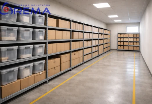 Regał pomaga utrzymać standard, ale wilgoć kontrolujesz pojemnikami, pochłaniaczami i/lub strefą suszenia. Regał ma ułatwić ten proces.