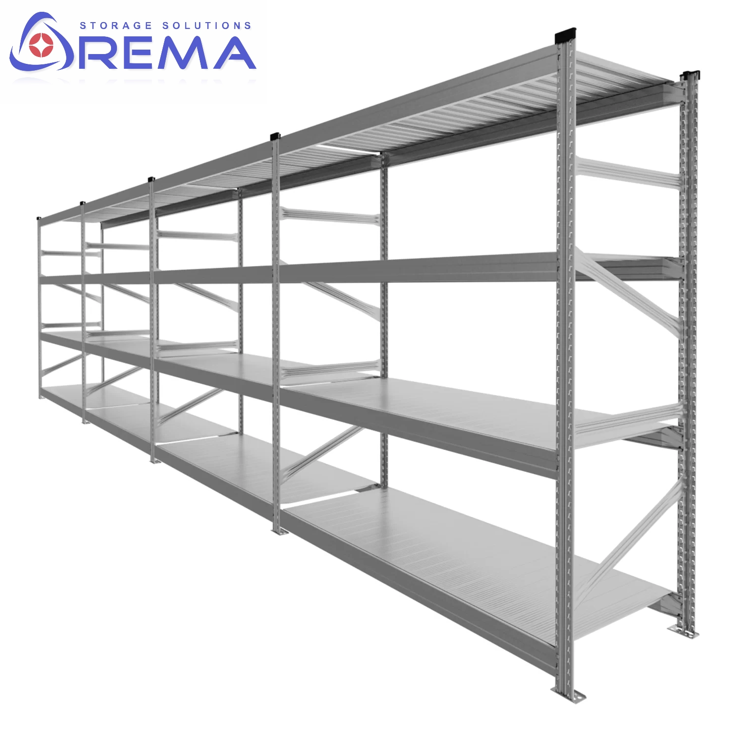 👉 To regały półkowe typu ciężkiego, przeznaczone do składowania ciężkich i dużych towarów.