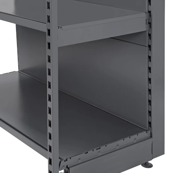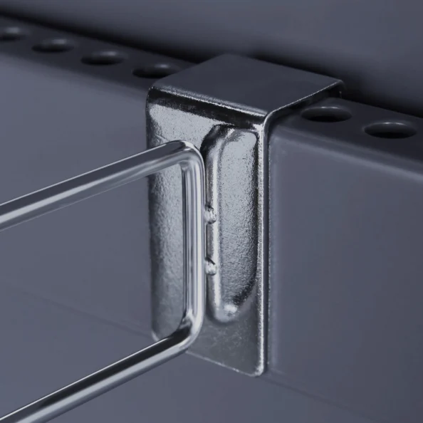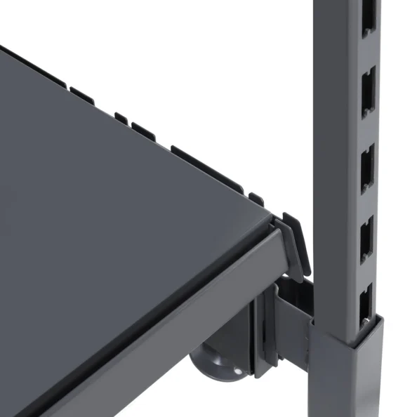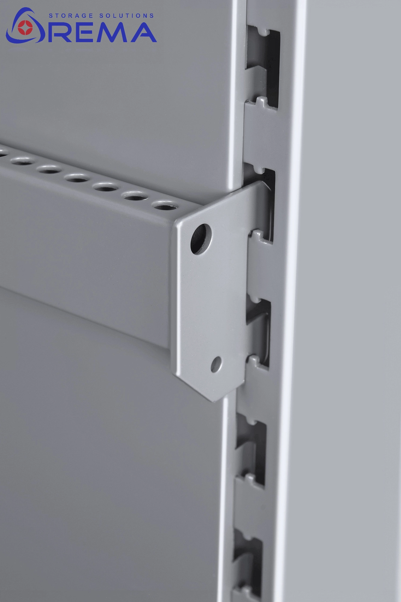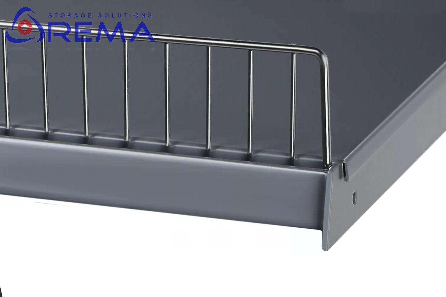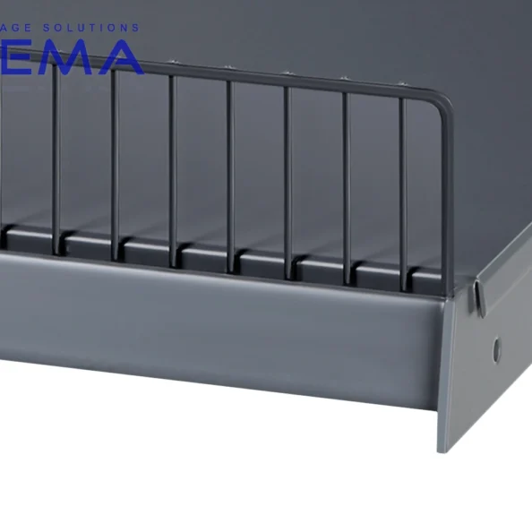 Ograniczniki boczne zabezpieczają boki półek i ułatwiają utrzymanie porządku na regale.