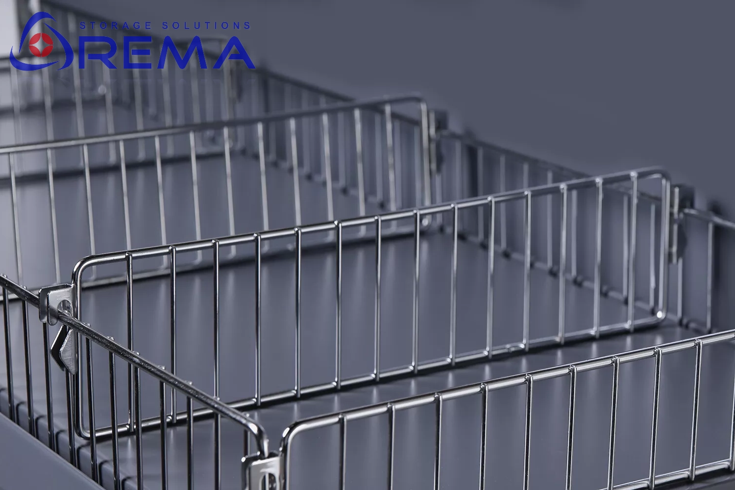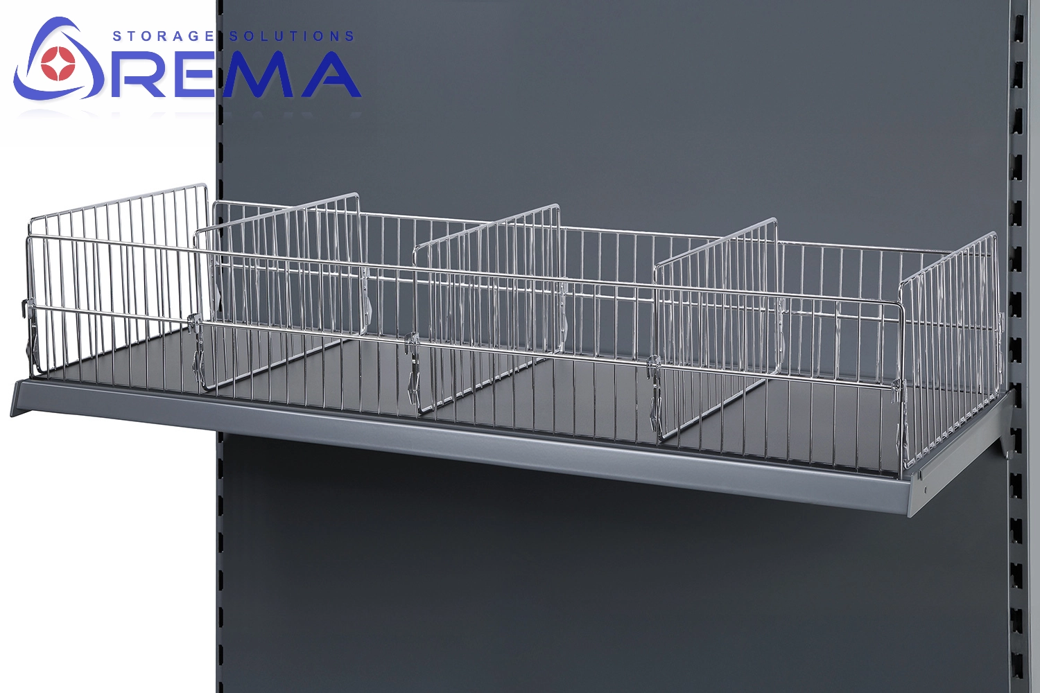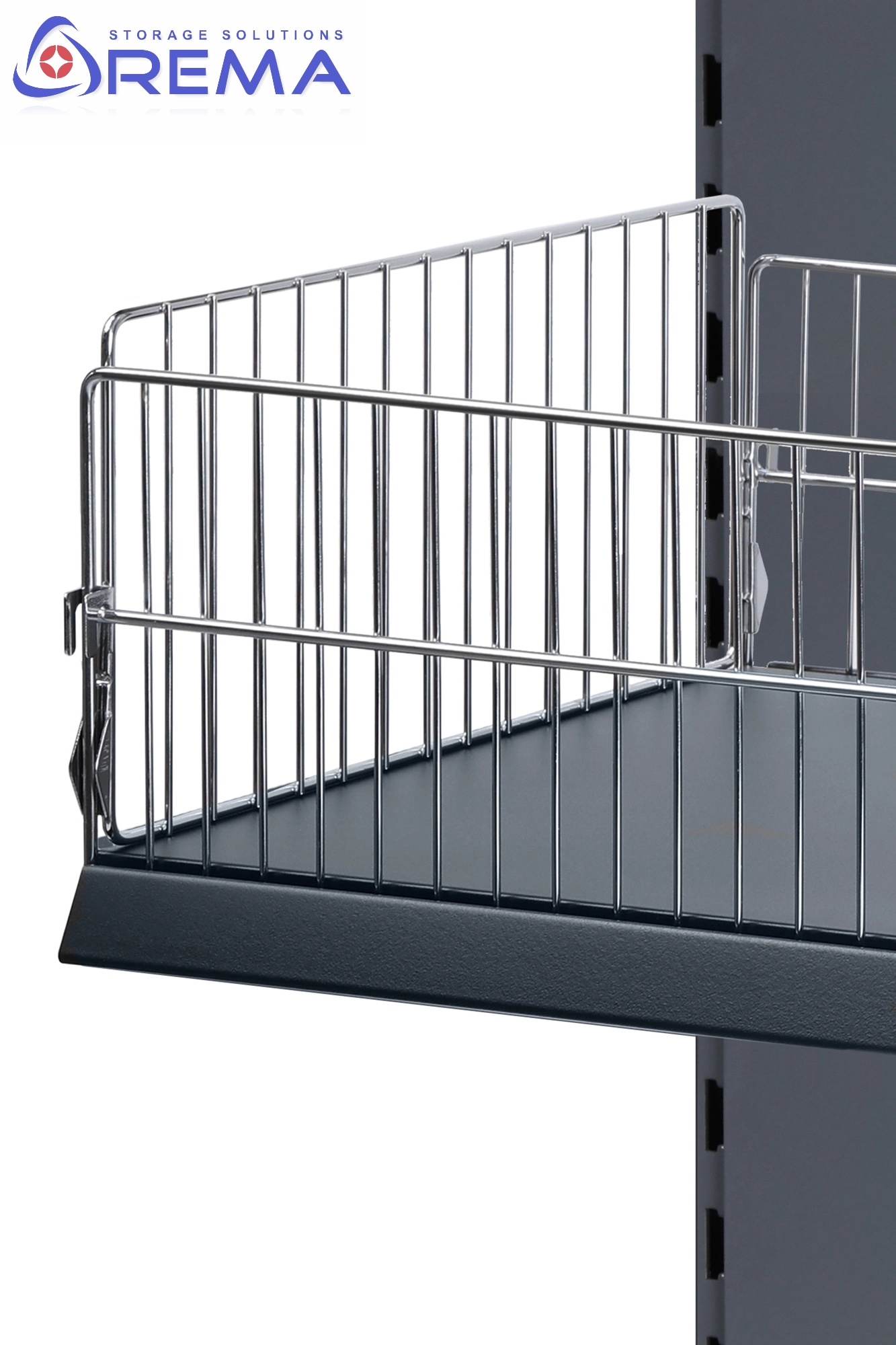 Są trwałe, sztywne i znakomicie sprawdzają się w sklepach, w których eksponuje się produkty w opakowaniach nieregularnych lub podatnych na zsuwanie. Konstrukcja z drutu stalowego zapewnia wyjątkową stabilność i przydatność w miejscach o dużej rotacji towaru.