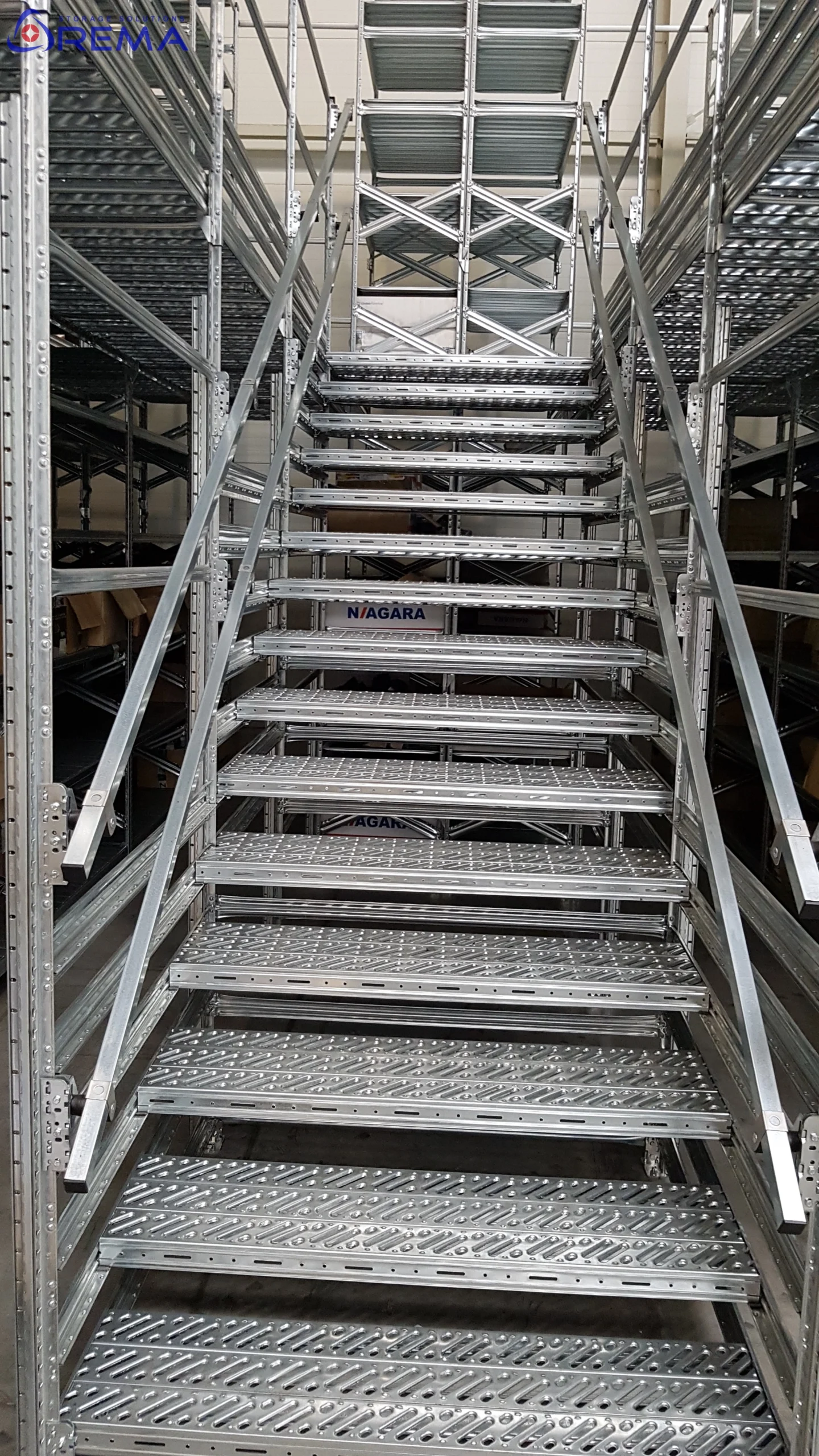 Bezpieczeństwo personelu jest kluczowe, dlatego dostęp na poziom 1 odbywa się po schodach wykonanych z perforowanych paneli stalowych. Perforacja działa praktycznie, ponieważ ogranicza gromadzenie się zanieczyszczeń na stopniach. Dodatkowo poprawia przyczepność, a więc zmniejsza ryzyko poślizgnięcia.