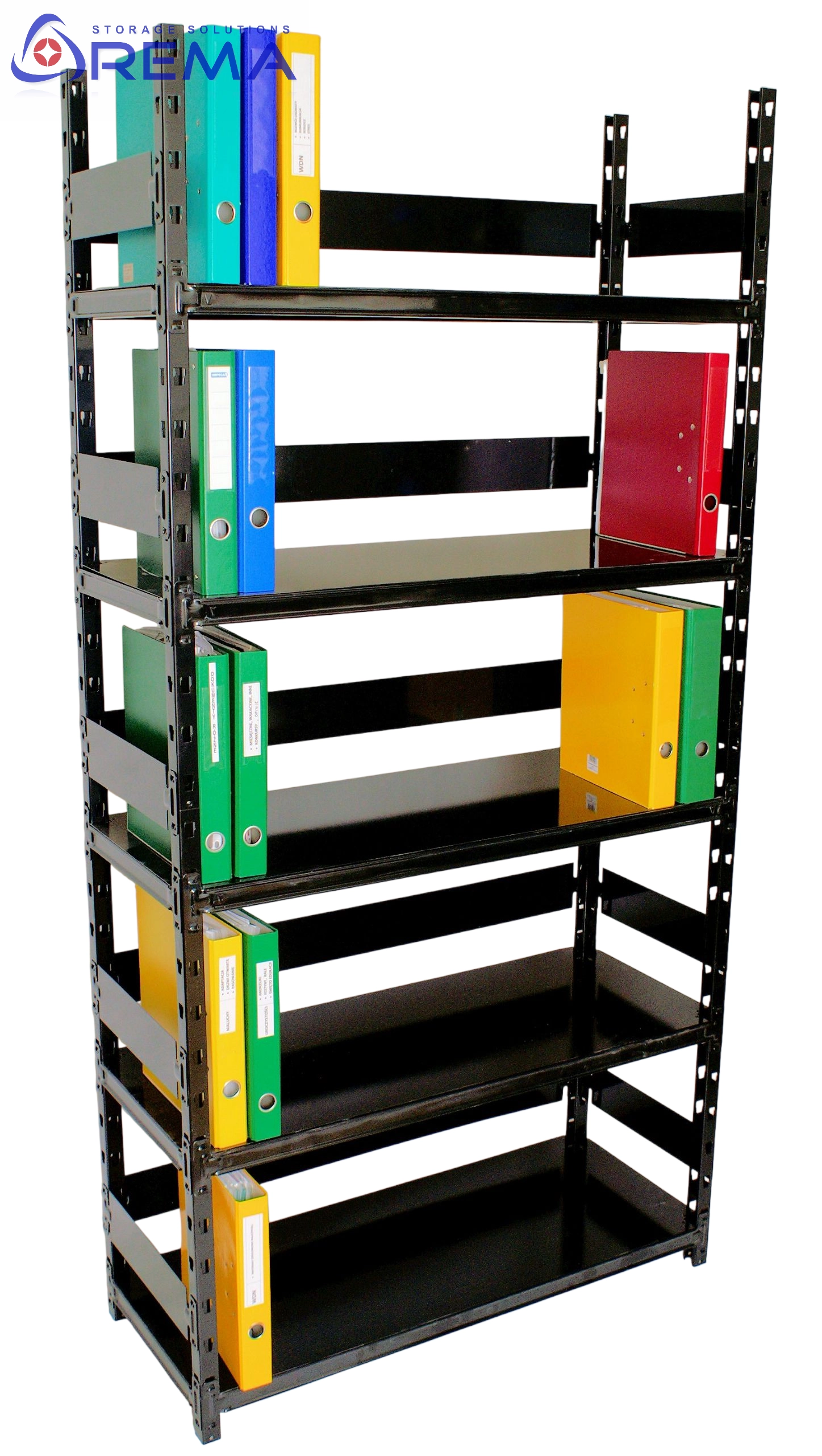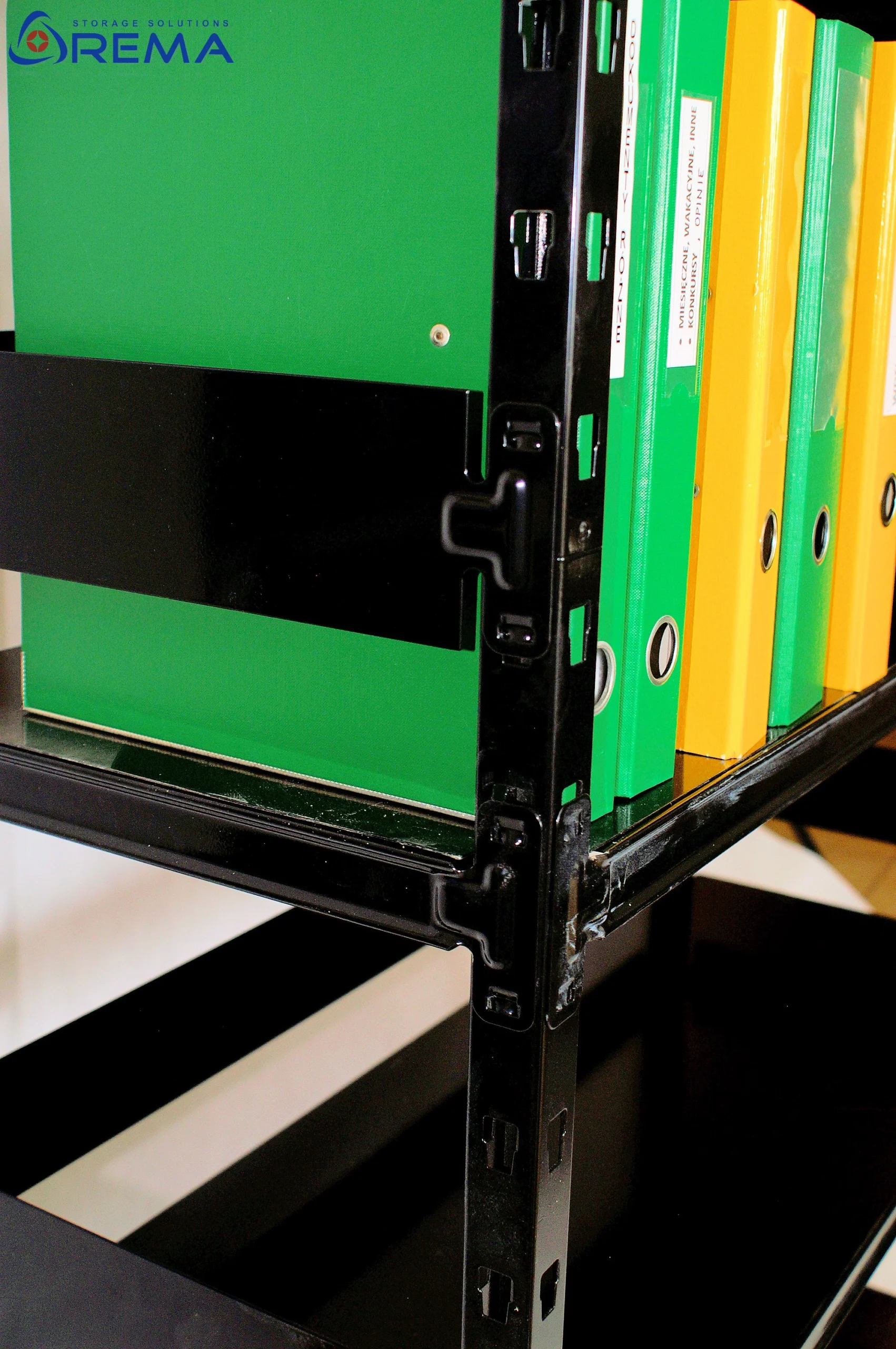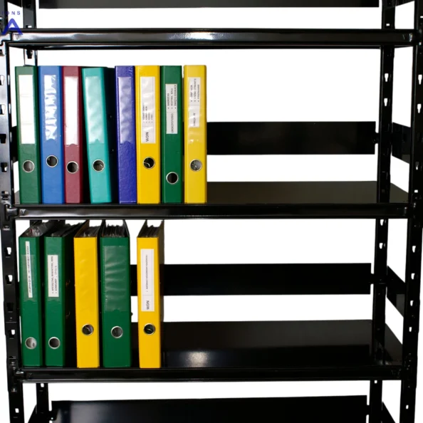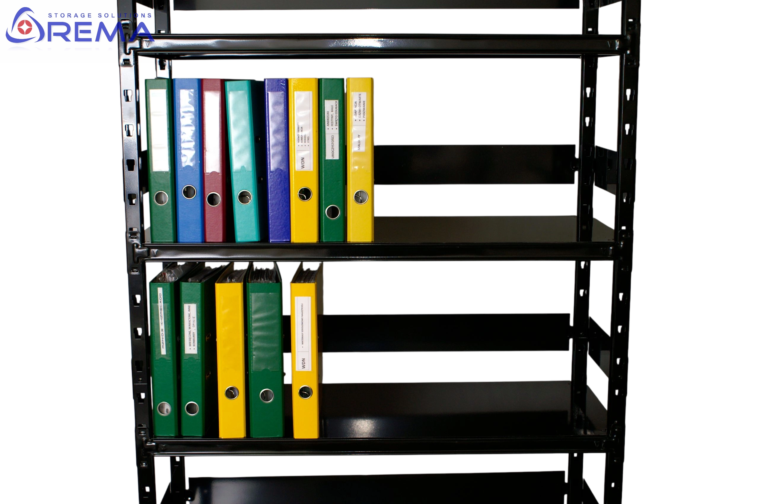 Dzięki stabilności i dużej nośności półek świetnie sprawdzi się przy przechowywaniu segregatorów, teczek, kartonów archiwalnych czy pojemników z dokumentacją.