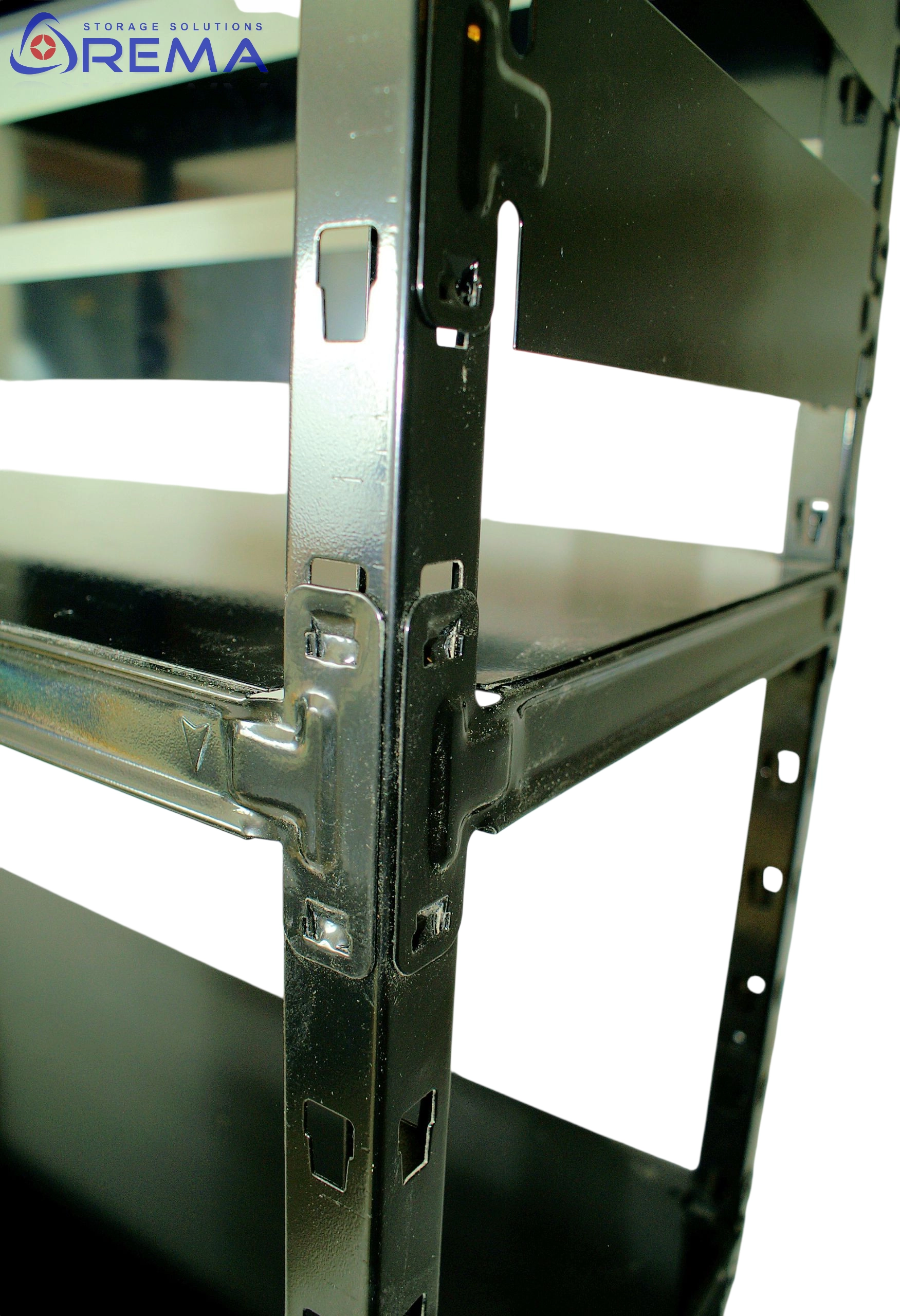 Łączenie szeregowe regałów za pomocą specjalnych złączek,
