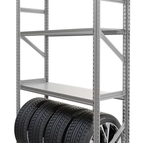 Dzięki temu jeden regał może pełnić rolę zarówno regału na opony cynkowanego, jak i regału warsztatowego.
