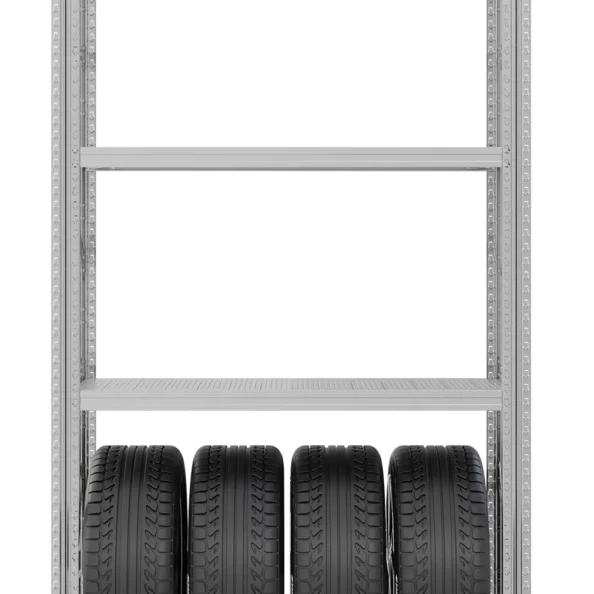 Galwanizowana powierzchnia w odcieniu srebrzystym sprawia, że regał doskonale komponuje się zarówno z industrialnym wnętrzem warsztatu, jak i nowoczesnym wystrojem przydomowego garażu.