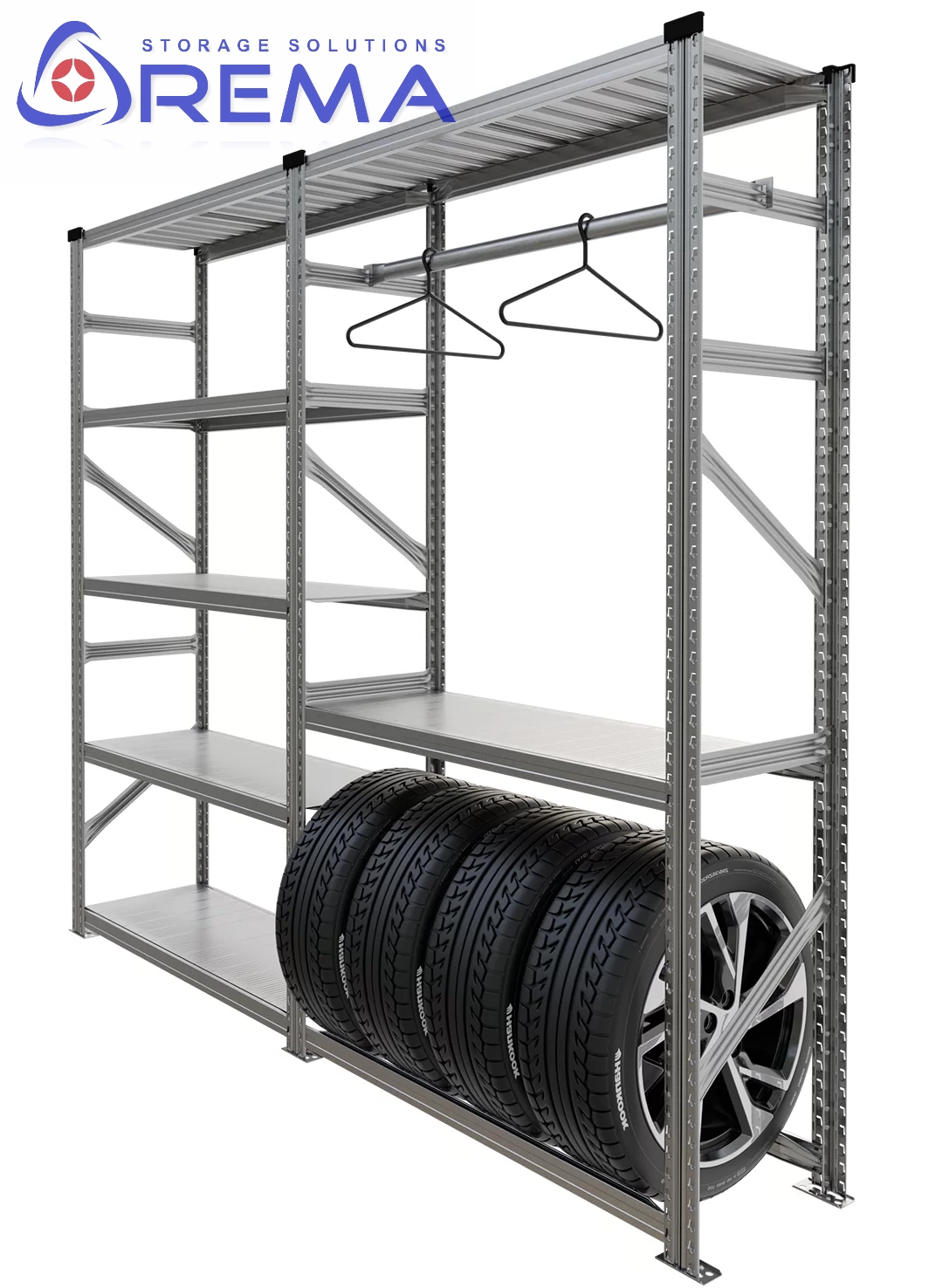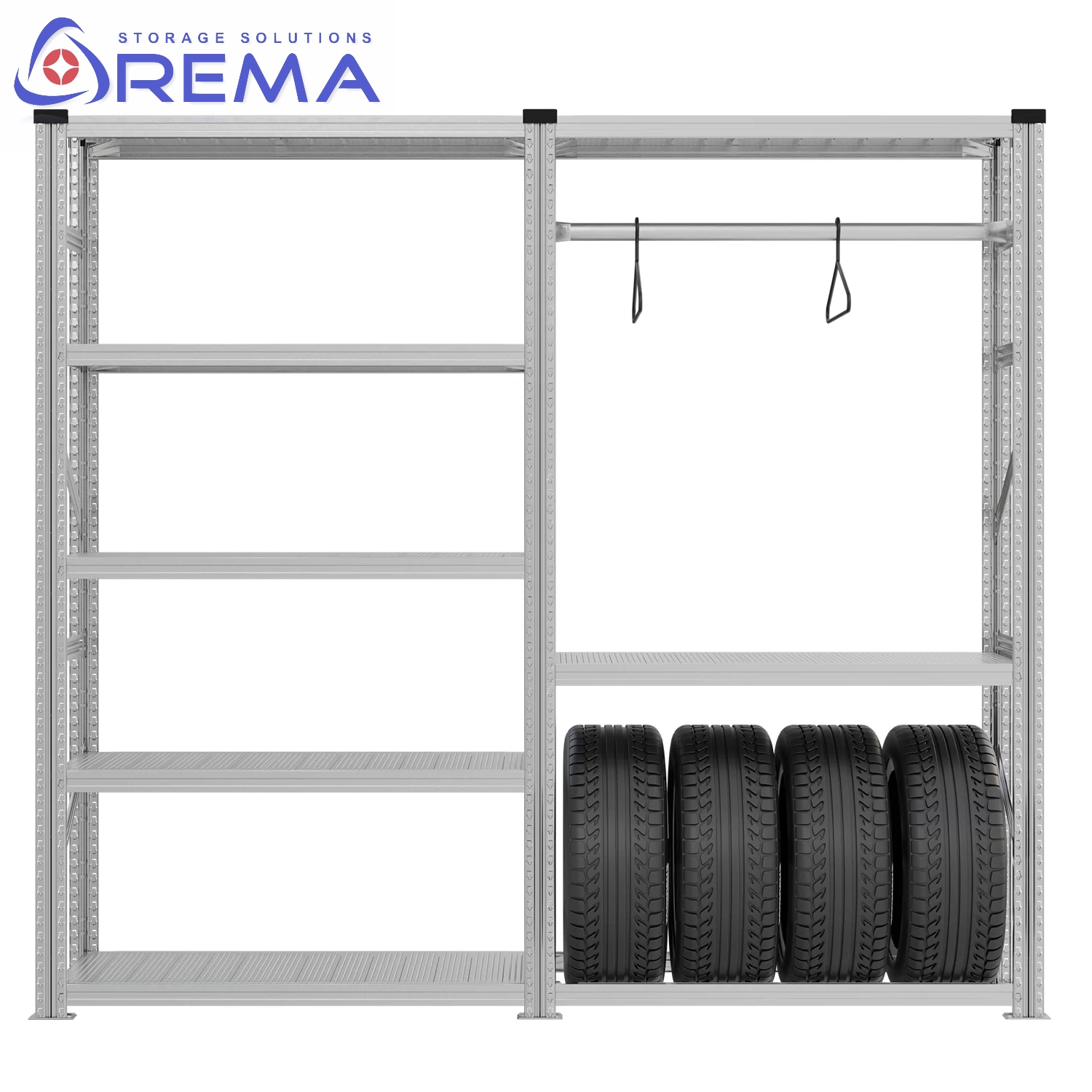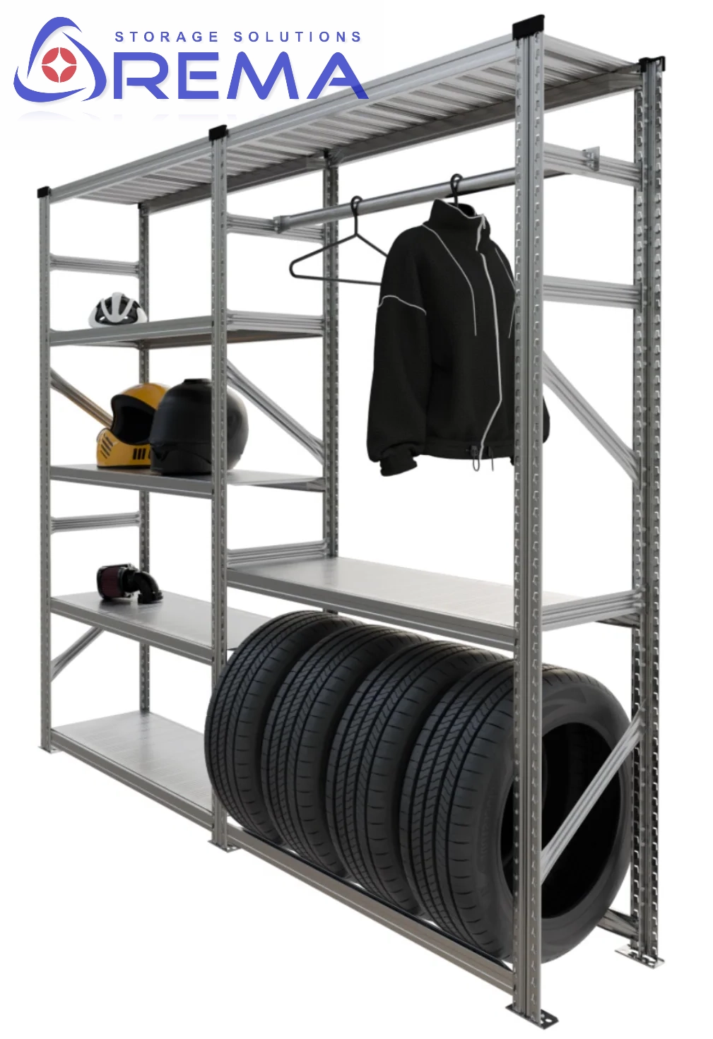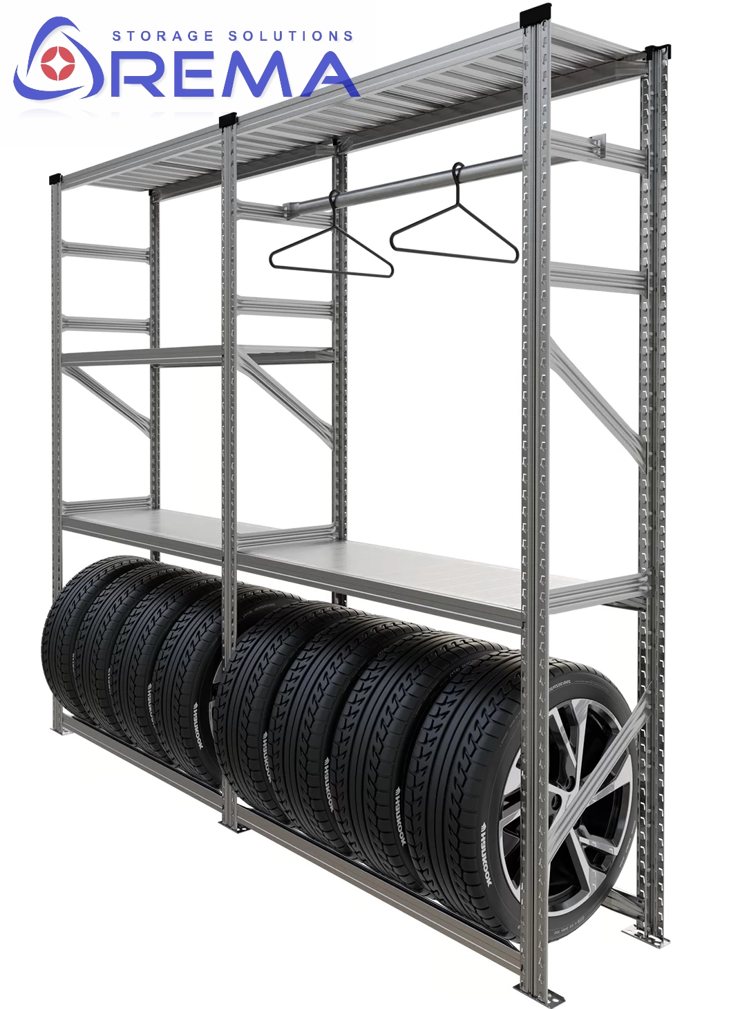 Regał do garażu REMA to idealne połączenie wytrzymałości, estetyki i funkcjonalności. Dzięki stalowej ocynkowanej konstrukcji i regulowanym półkom możesz przechowywać opony, narzędzia i inne akcesoria w uporządkowany sposób. Ten uniwersalny regał można rozbudowywać, łączyć w ciągi i dopasować do każdego garażu – od małego przydomowego po profesjonalny warsztat.
