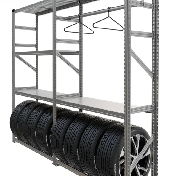Możliwość konfiguracji półek i belek nośnych pozwala dopasować go do indywidualnych potrzeb użytkownika – niezależnie od tego, czy służy do przechowywania opon, narzędzi, czy domowych akcesoriów.
