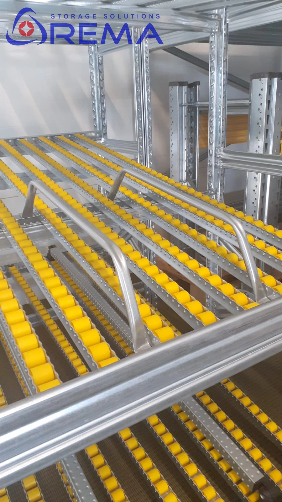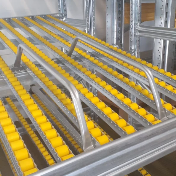 Akcesoria: prowadnice boczne dla opon, odboje końcowe, separatory, rolki hamujące na wyjściu, łączniki nad alejkami, łączniki „plecami”.
