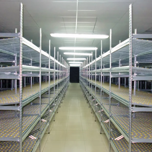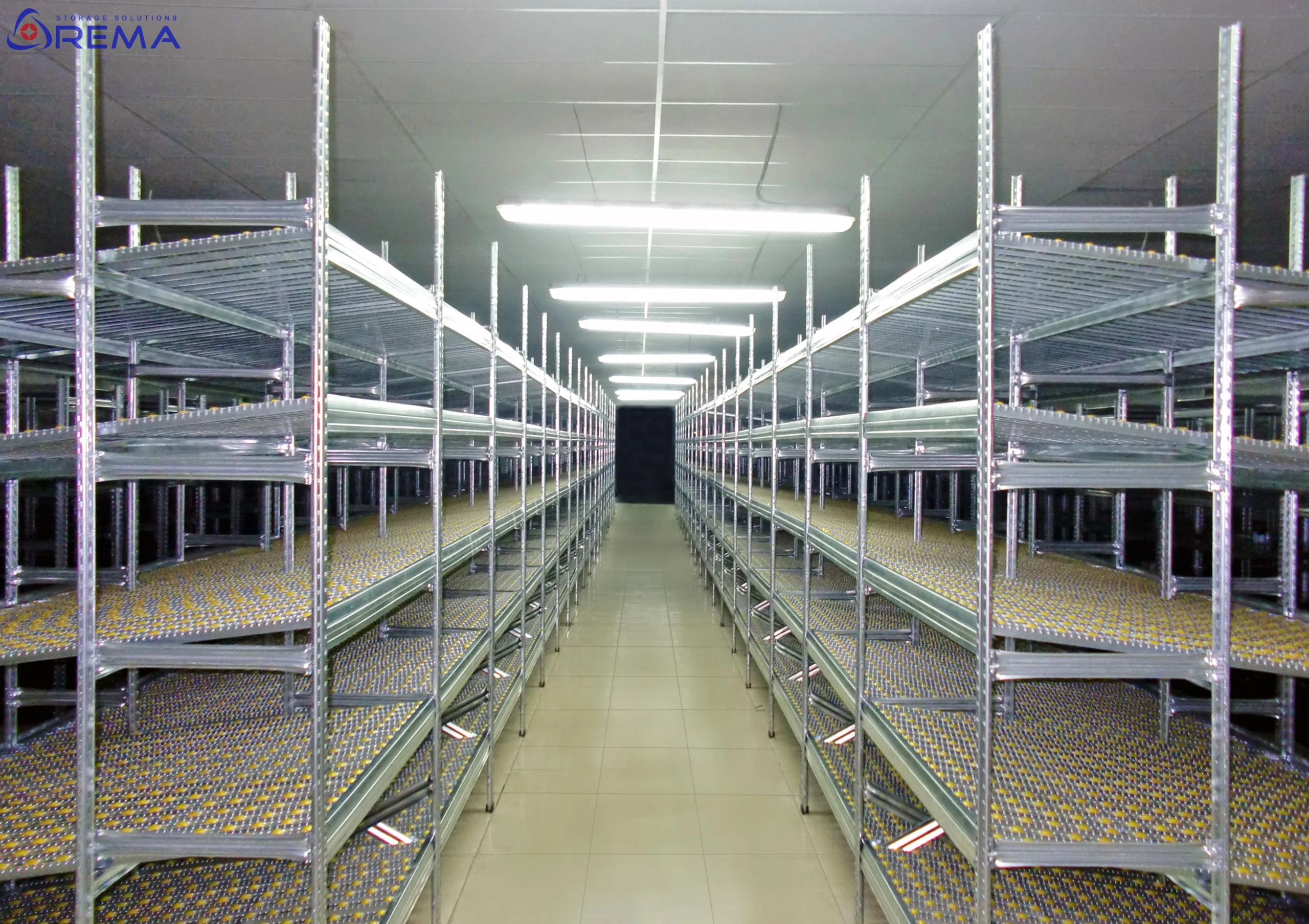 Dzięki wykorzystaniu grawitacji i pracy w systemie przepływowym, można zredukować liczbę korytarzy roboczych. Regały ustawiane są w długie ciągi, co pozwala zwiększyć pojemność magazynu nawet o 60% bez potrzeby rozbudowy obiektu.