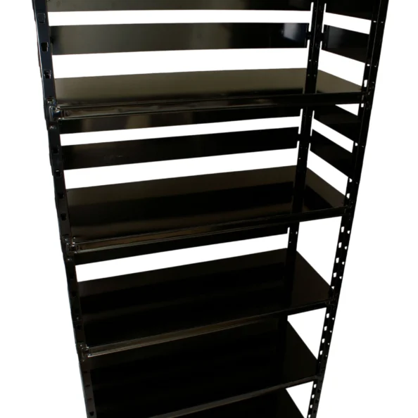Regał metalowy BETA M to uniwersalne i trwałe rozwiązanie stworzone z myślą o przechowywaniu różnego rodzaju towarów w magazynach, warsztatach, garażach, piwnicach czy archiwach. W odróżnieniu od regału DELTA 200, który posiada półki z płyty wiórowej, model BETA M został wyposażony w półki w całości wykonane ze stali o grubości 1 mm. To znacząco podnosi jego odporność na uszkodzenia mechaniczne, wilgoć czy intensywną eksploatację i estetykę regału.
