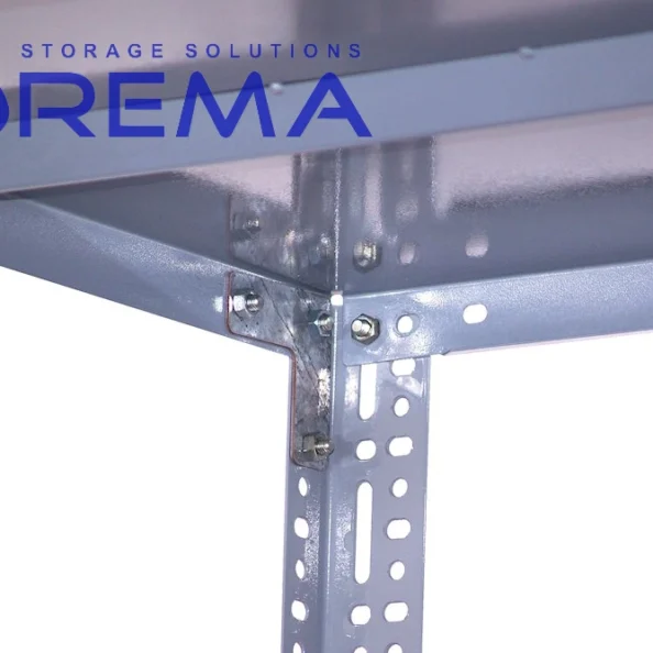 Regał metalowy wzmocniony RMC to niezawodne rozwiązanie stworzone z myślą o najbardziej wymagających użytkownikach. Jest to skręcany regał magazynowy, którego konstrukcja oparta jest na stabilnych kątownikach stalowych i wzmocnionych półkach metalowych. Dzięki zastosowaniu solidnych materiałów oraz dodatkowych wzmocnień, regał zapewnia wysoką nośność, długą żywotność i pełne bezpieczeństwo użytkowania. Lżejsza wersja tego regału w systemie regałów skręcanych na wymiar to nasz regał metalowy RML o udźwigu półki 100 kg (regału 650 kg). Regał metalowy wzmocniony sprawdzi się jako dwustronny regał archiwalny. Możemy zastosować w nim ograniczniki boczne oraz centralny rozdzielający półkę na pół. Zapobiega to spadaniu dokumentów i przepychaniu segregatorów.