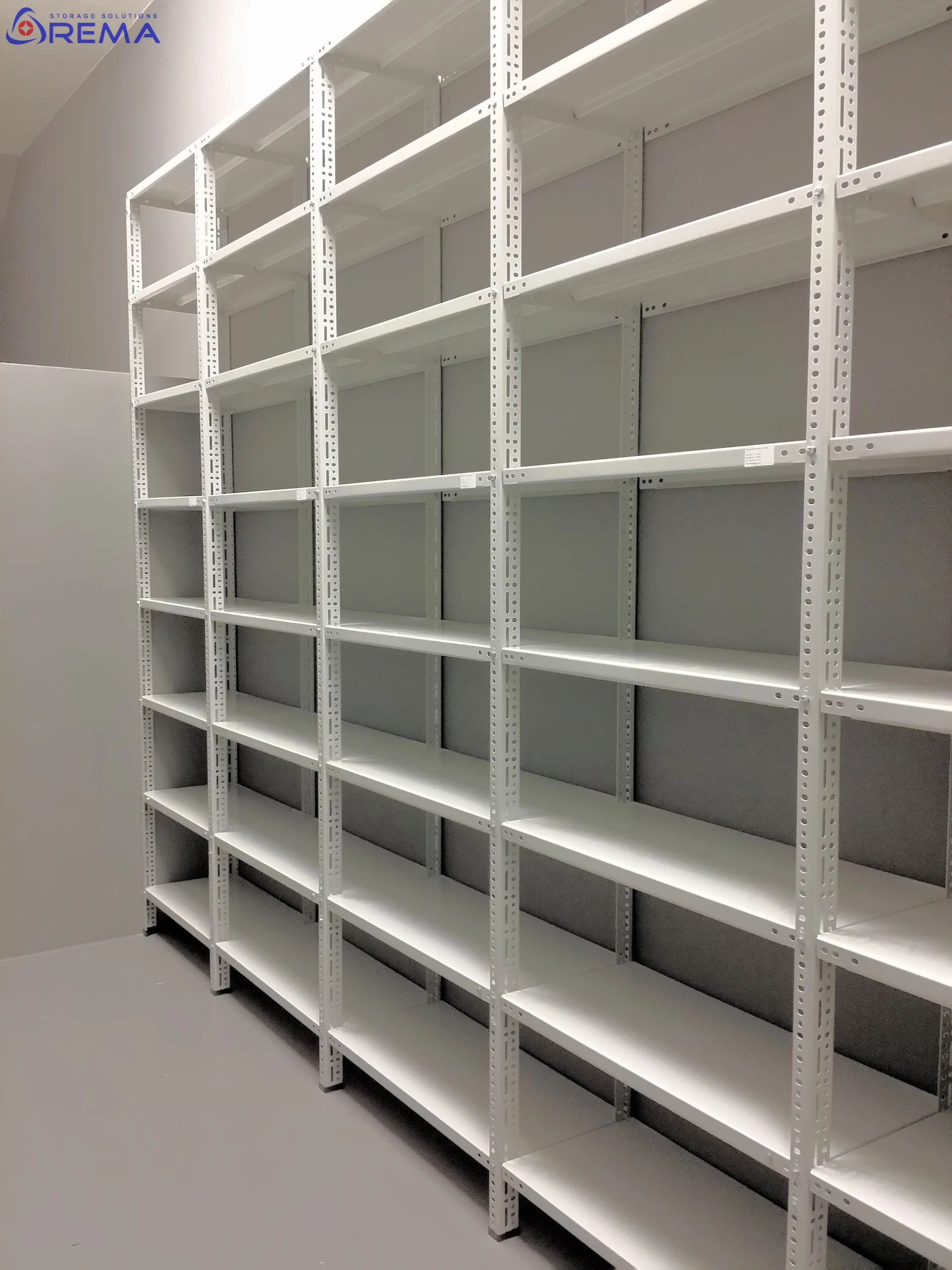 Powłoka ochronna – regał malowany jest proszkowo w standardowym kolorze popielatym RAL 7035, co chroni konstrukcję przed korozją i nadaje estetyczny wygląd.