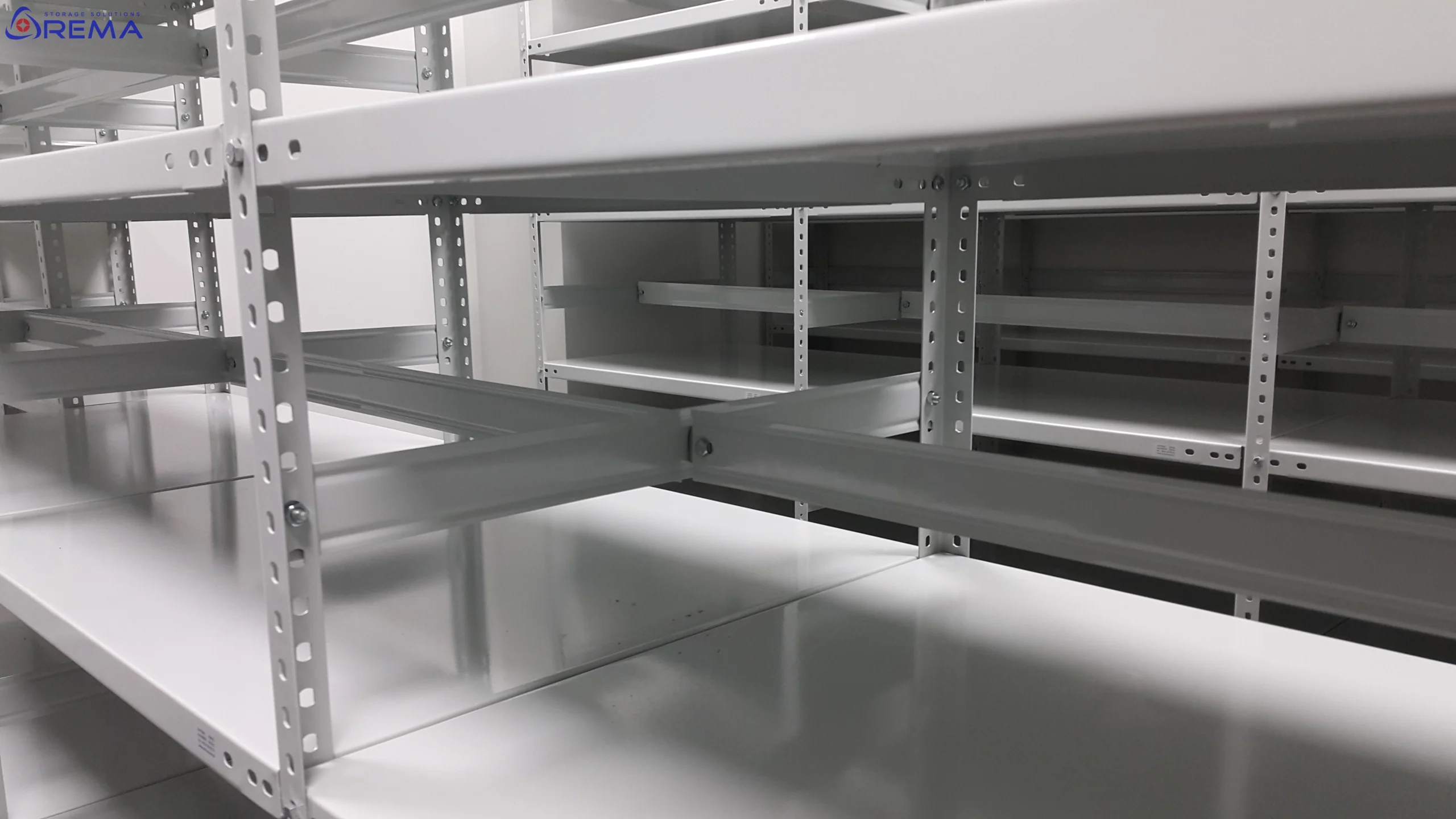 Modułowość – możliwość łączenia regałów w długie szeregi daje elastyczność w zagospodarowaniu przestrzeni.