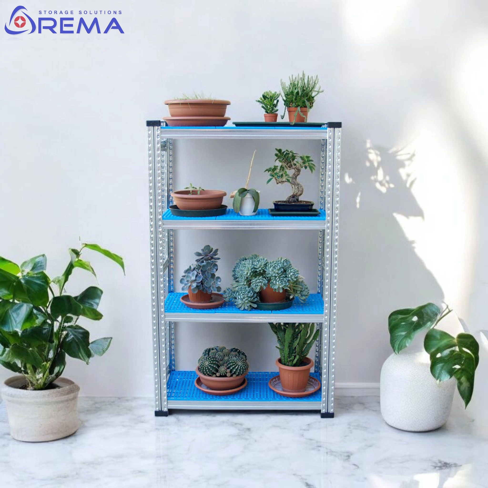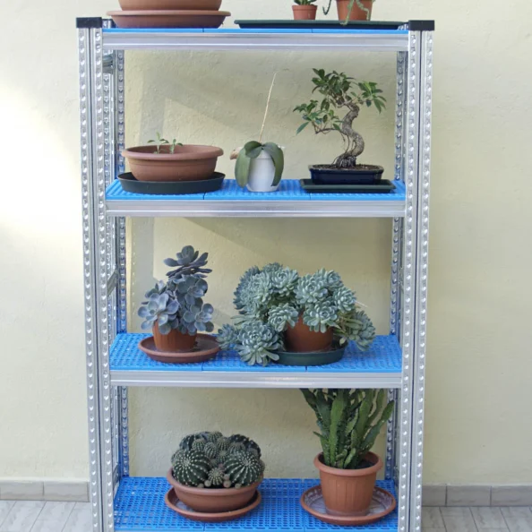 Połączenie regału ocynkowanego i PCV tworzy wyjątkowy, nowoczesny design, który doskonale komponuje się z każdą przestrzenią – od balkonów w blokach po tarasy i oranżerie. Lekka, a zarazem stabilna forma regału sprawia, że można go łatwo przestawiać, dopasowując układ do zmieniających się potrzeb.