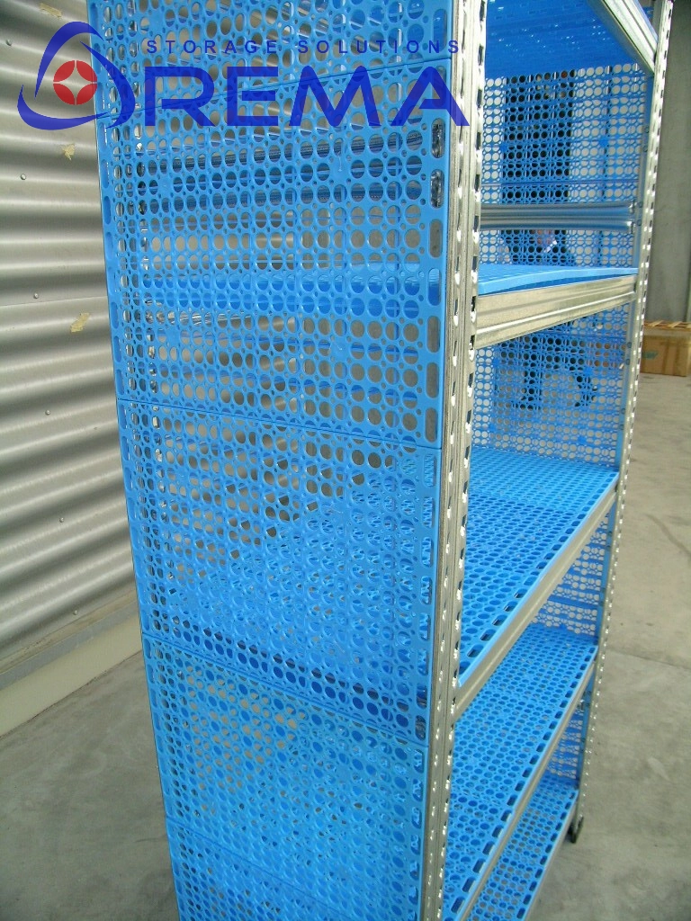 półki perforowane z PCV – mrozoodporne i łatwe w czyszczeniu,