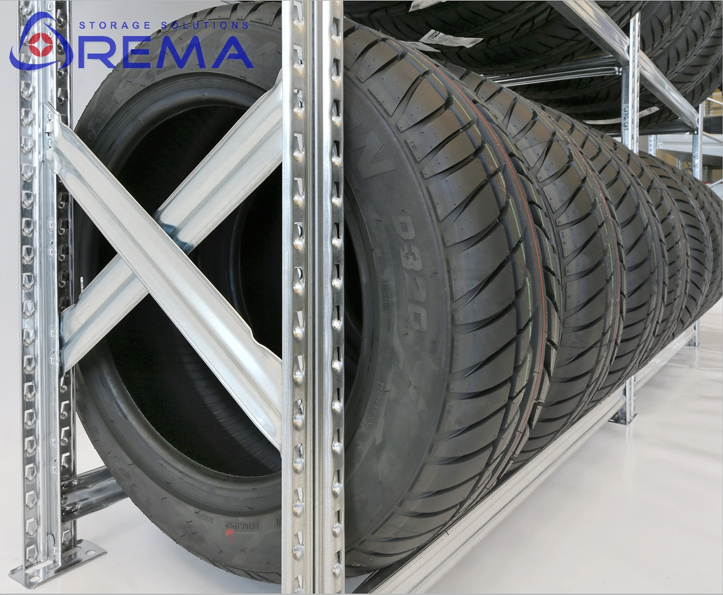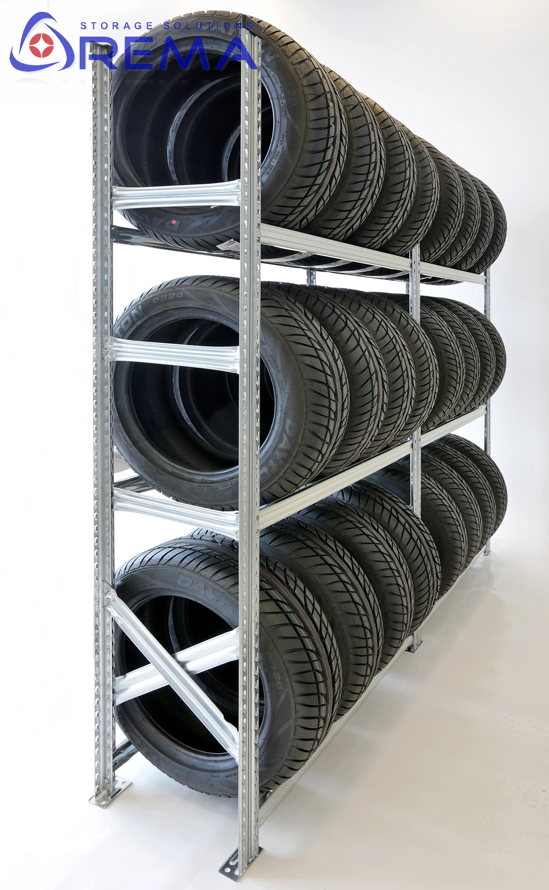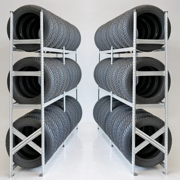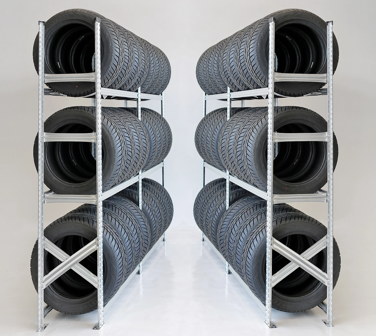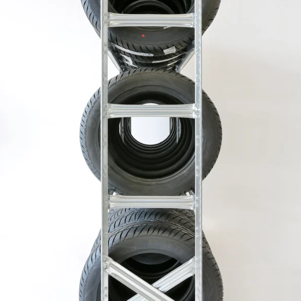 Dodatkowo regał został zaprojektowany z myślą o łatwym łączeniu w dłuższe szeregi, co pozwala w prosty sposób rozbudować system przechowywania opon.
