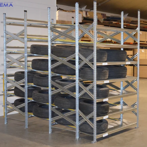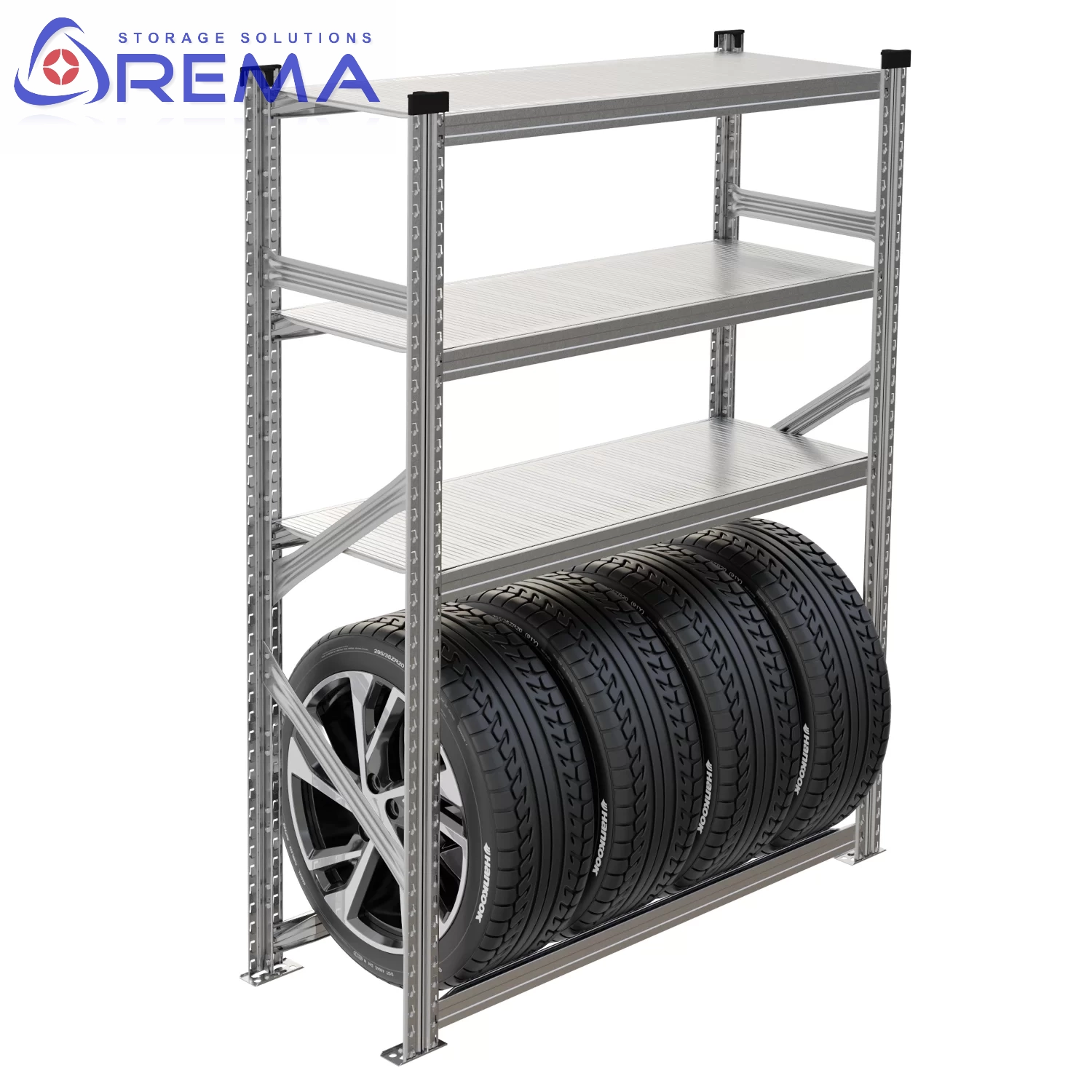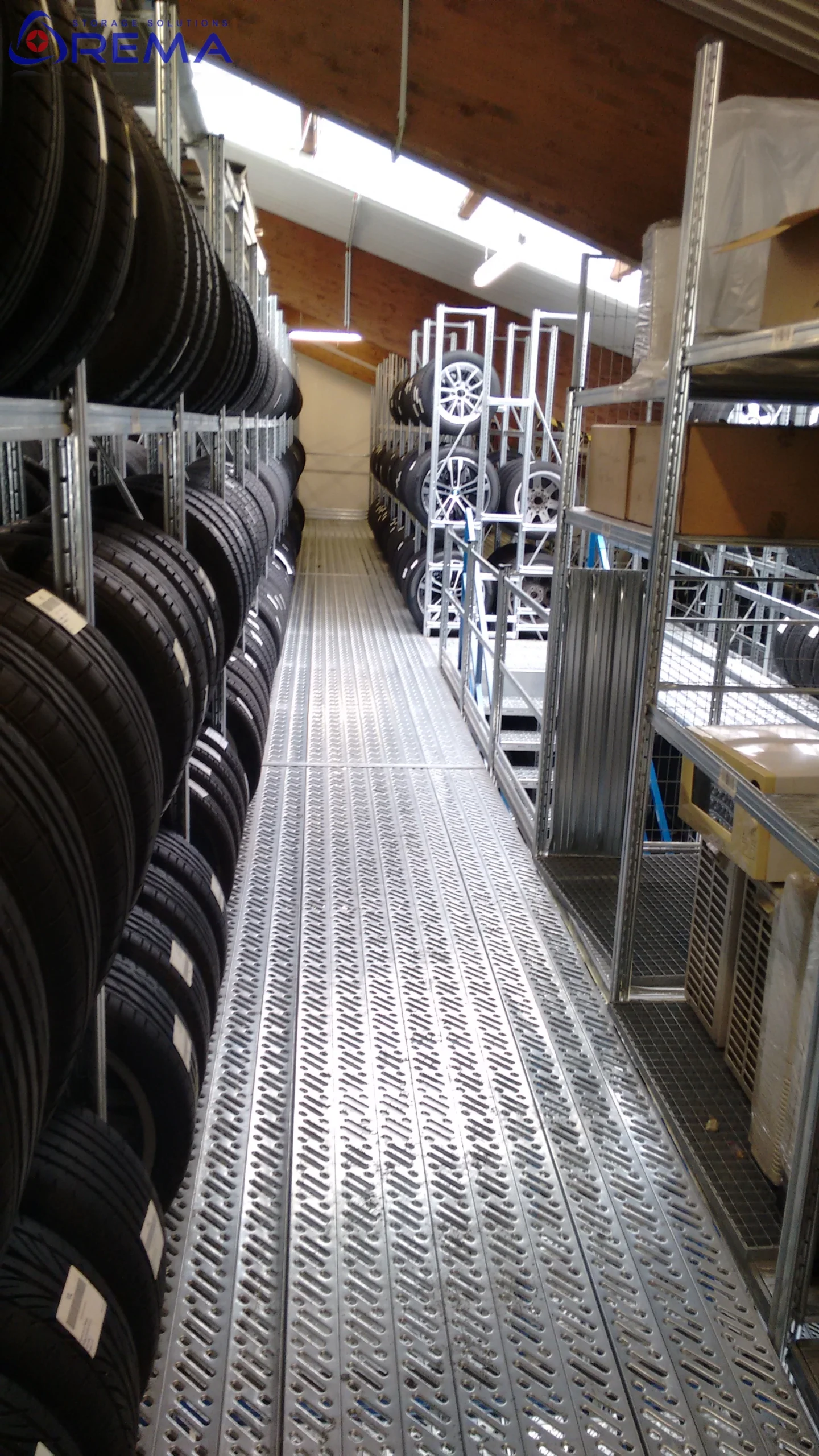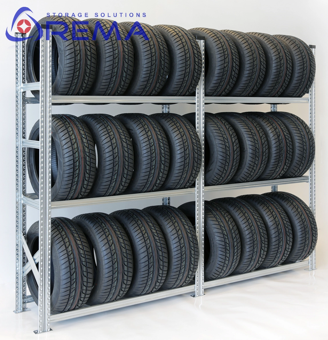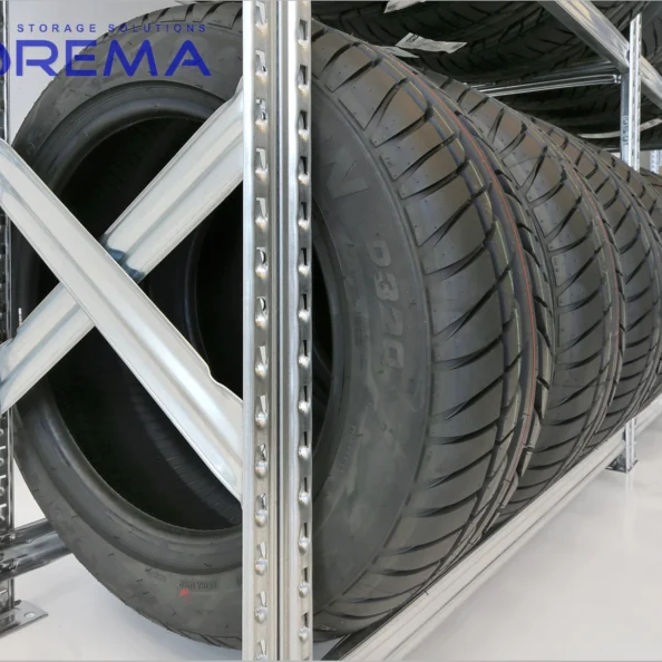 Dodatkowo regał został zaprojektowany z myślą o łatwym łączeniu w dłuższe szeregi, co pozwala w prosty sposób rozbudować system przechowywania opon.
