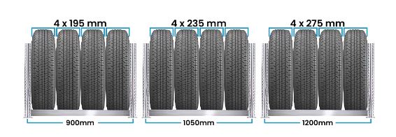 Regał na opony ocynkowany RPO dostępny jest w kilku wariantach długości belek, co pozwala na dopasowanie jego wymiarów do szerokości opon: