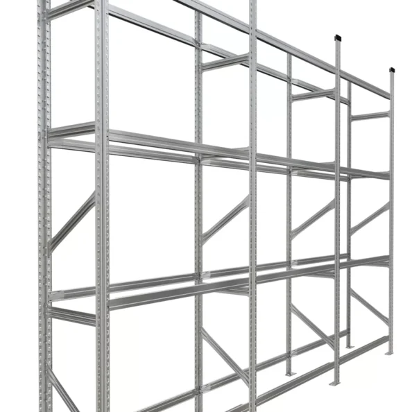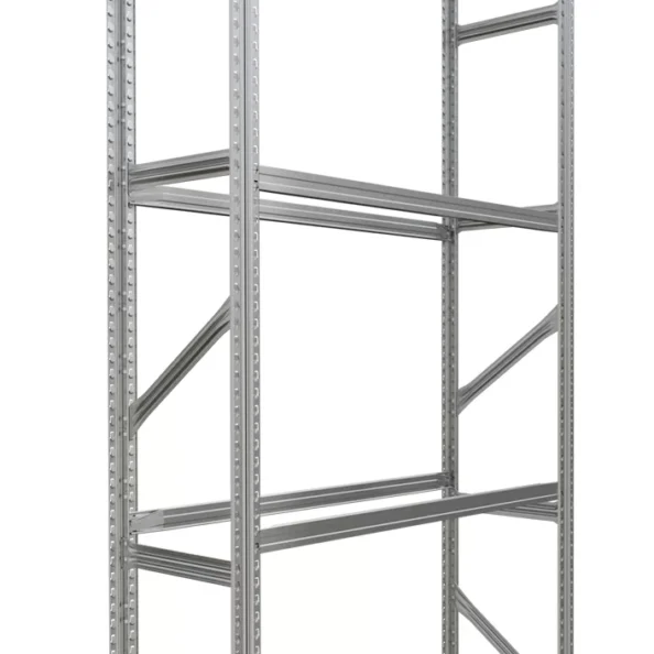 Cała konstrukcja regału zapewnia stabilność nawet przy dużym obciążeniu, a dzięki przemyślanemu rozkładowi sił regał nie wymaga dodatkowych podpór ani wzmocnień bocznych.