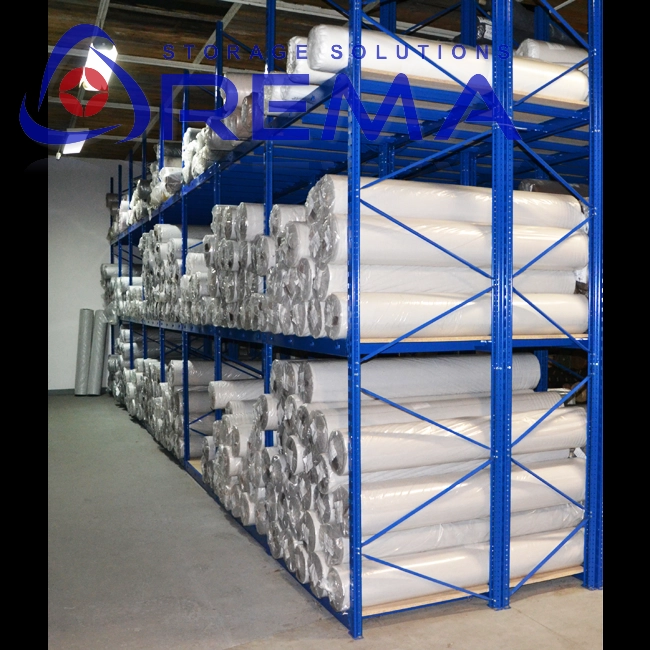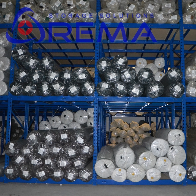 regały magazynowe do przechowywania rolek folii, wykładzin lub papierów,
