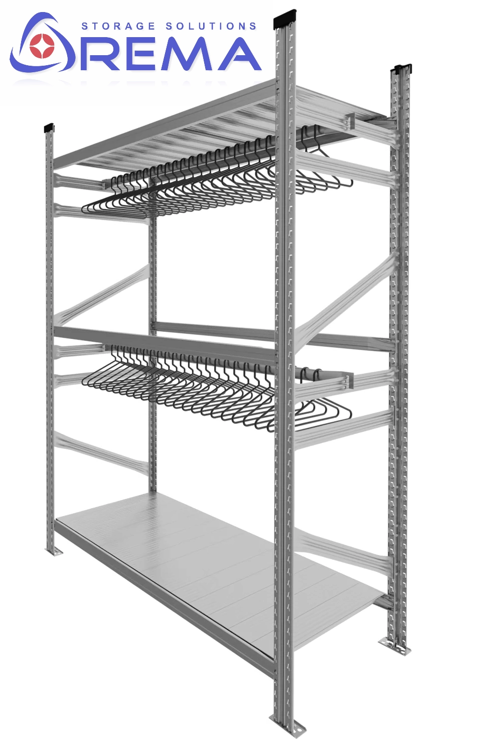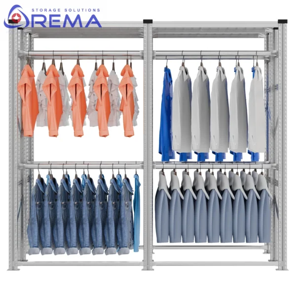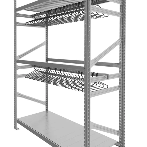 Praktyczny i solidny regał na ubrania to idealne rozwiązanie do szatni, magazynu, sklepu lub domu. Wykonany z trwałej stali ocynkowanej, umożliwia zawieszanie odzieży bokiem w jednym, dwóch lub trzech poziomach oraz montaż półek na pudełka i akcesoria. To uniwersalny system, który łączy funkcjonalność, estetykę i łatwość montażu w każdej przestrzeni.