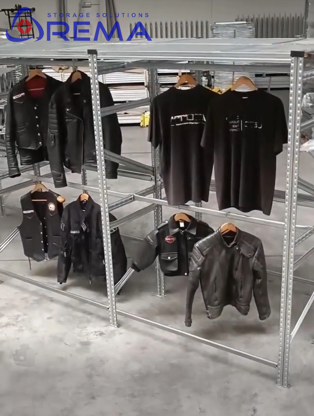 W przeciwieństwie do klasycznych regałów ekspozycyjnych, gdzie odzież prezentowana jest frontem do klienta, regał na ubrania został zaprojektowany do zawieszania ubrań bokiem – tak, jak w magazynach lub szatniach.