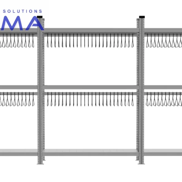 Każda belka wieszakowa wykonana jest z ocynkowanej stali o wysokiej nośności i może być łatwo regulowana. Dzięki temu cały system można w pełni dopasować do indywidualnych potrzeb użytkownika lub przestrzeni, w której jest montowany.