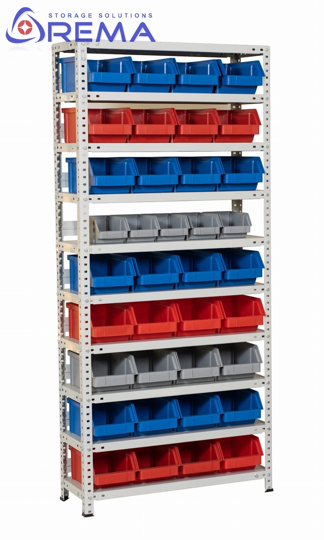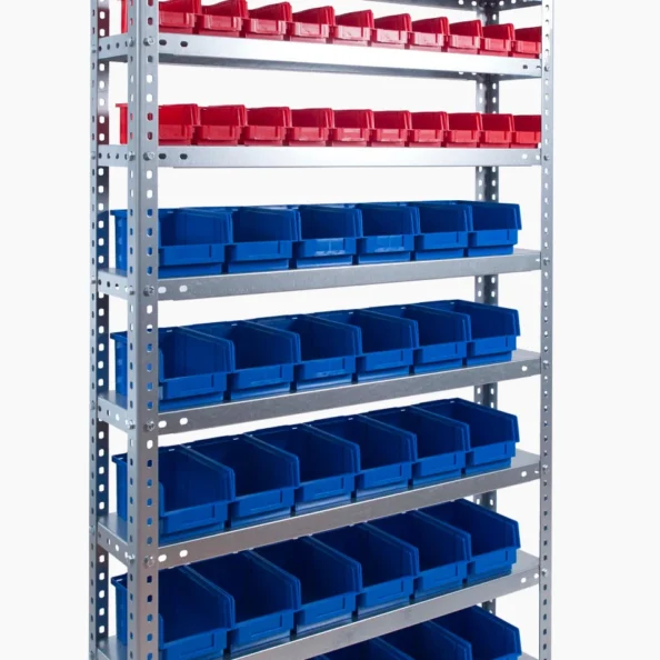 Każda półka może mieć odpowiednią głębokość (np. 200–800 mm) oraz rozstaw dopasowany do wysokości pudełek.
