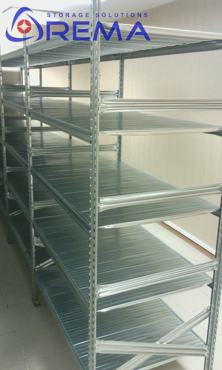 regały półkowe w chłodniach i mroźniach w przemyśle spożywczym,