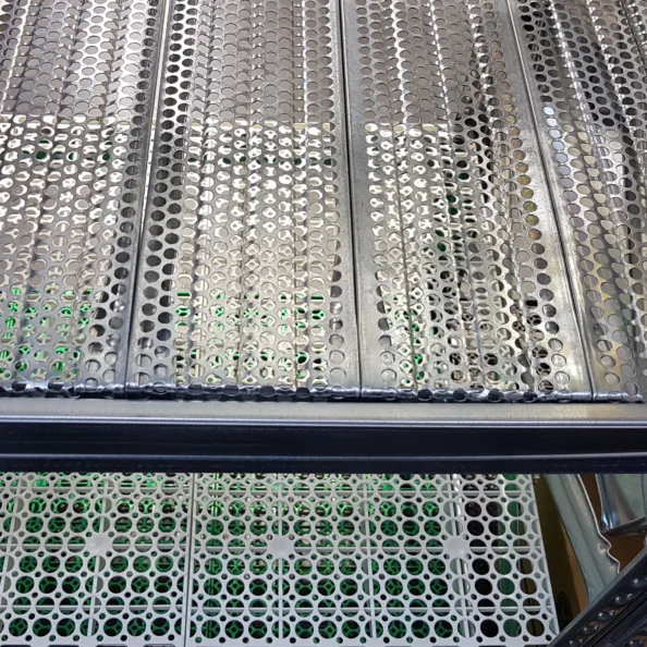 półki stalowe perforowane, które zapewniają swobodny obieg powietrza i równomierne chłodzenie produktów,