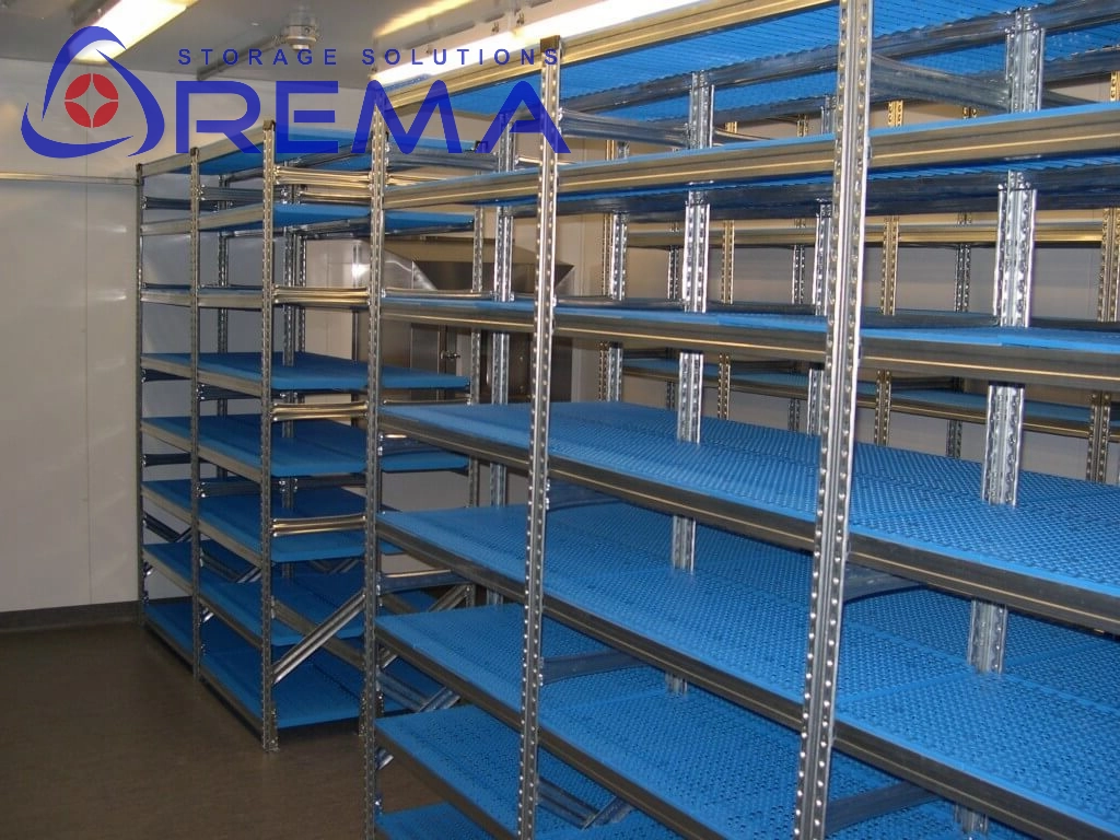 Regał półkowy PCV to specjalistyczne rozwiązanie zaprojektowane do chłodni i mroźni. Półki z paneli perforowanych PCV zapewniają swobodną cyrkulację powietrza, równomierne chłodzenie oraz higieniczne warunki przechowywania. Dzięki odporności na wilgoć i niskie temperatury, regał doskonale sprawdzi się w branży spożywczej, farmaceutycznej i gastronomicznej.