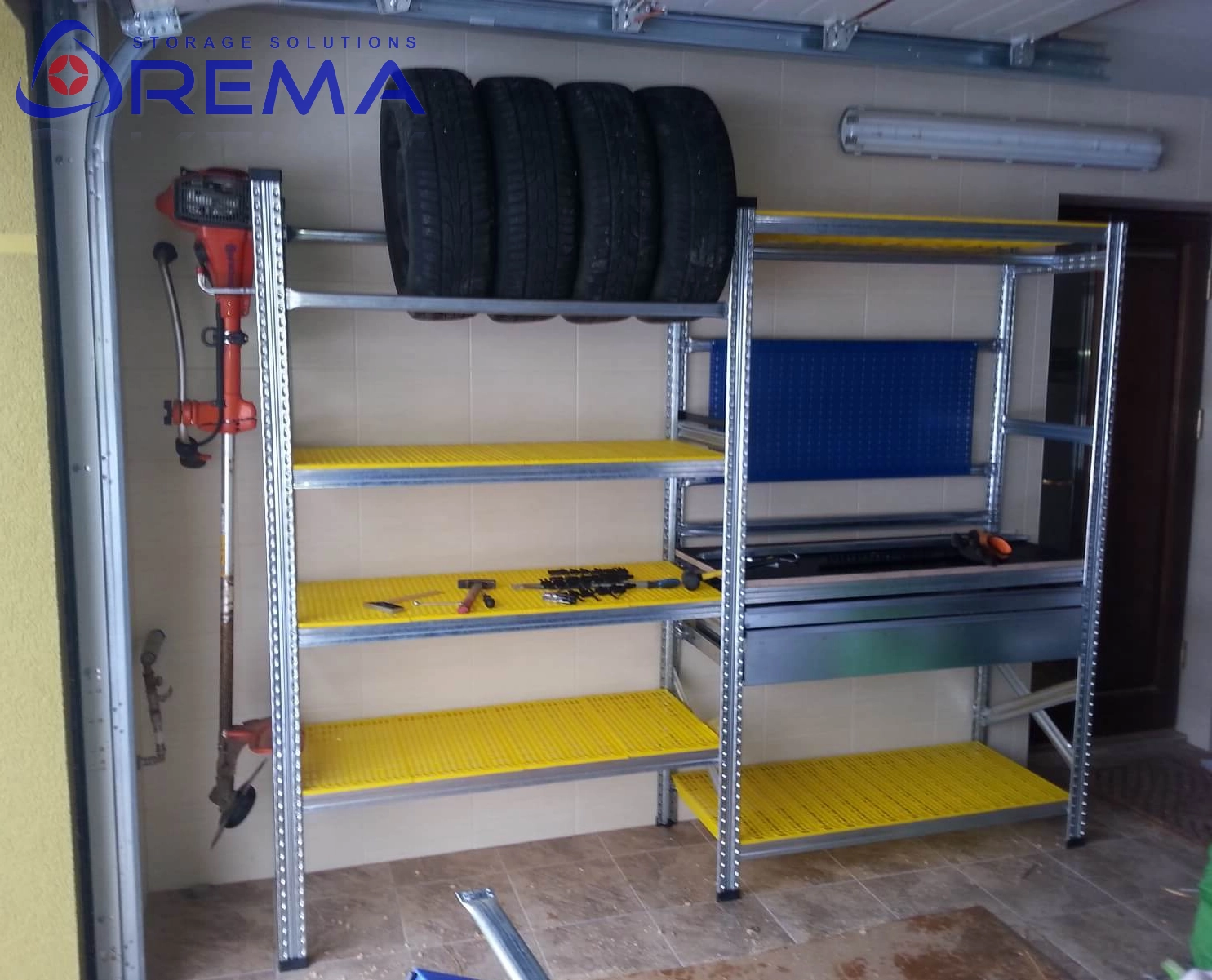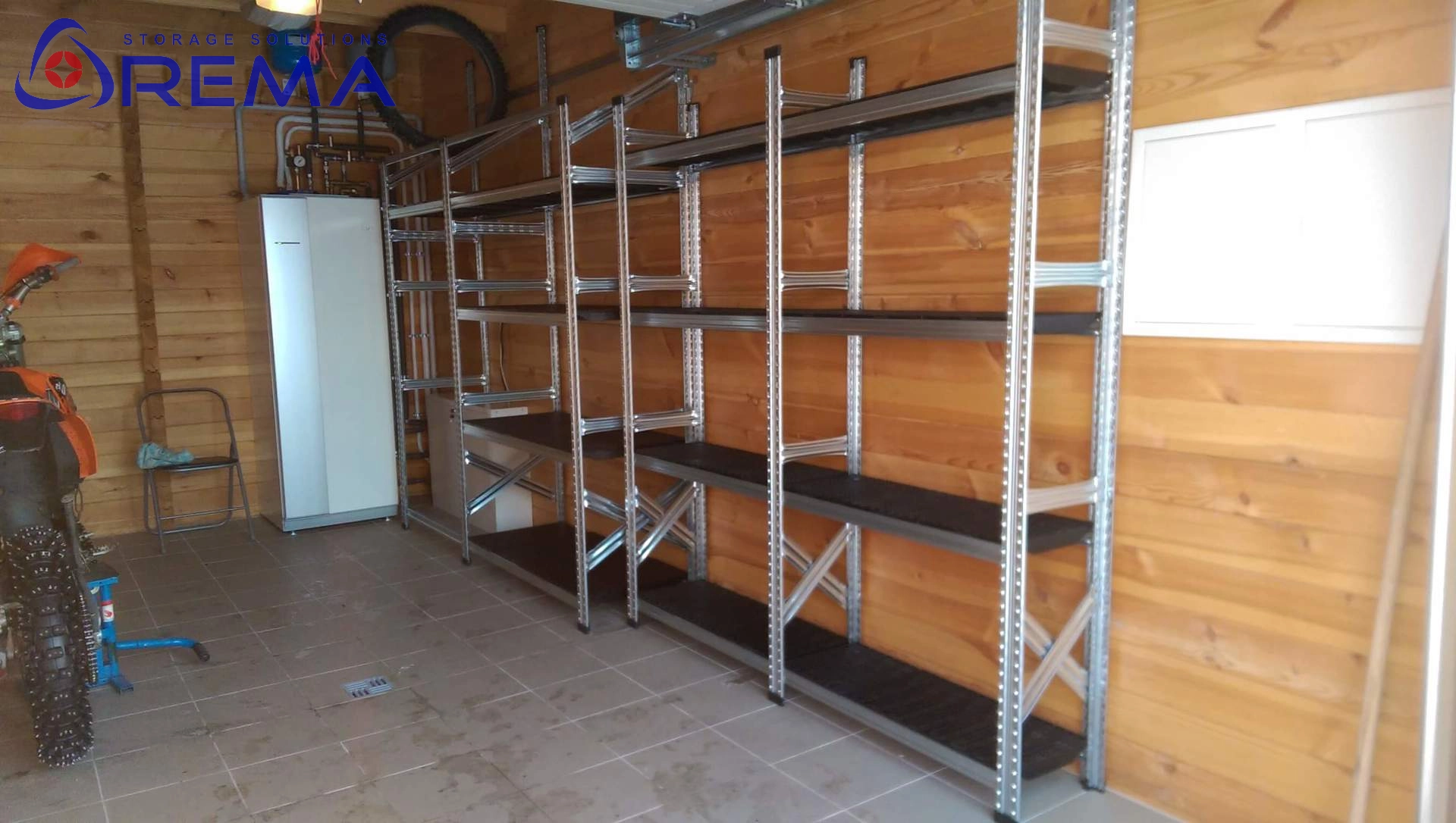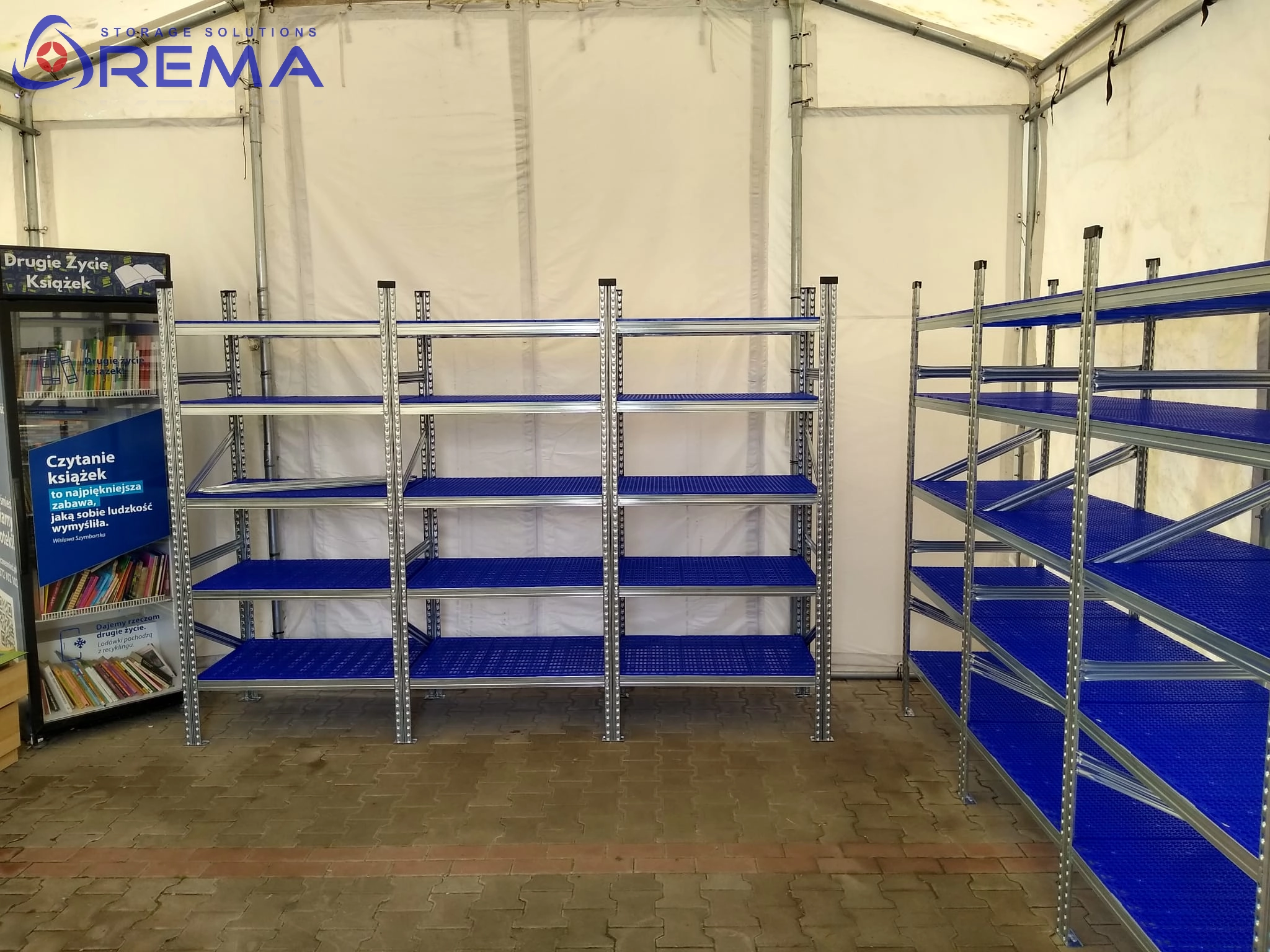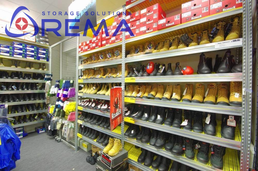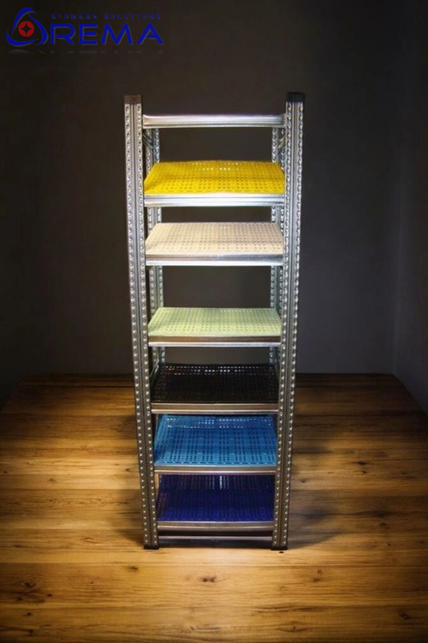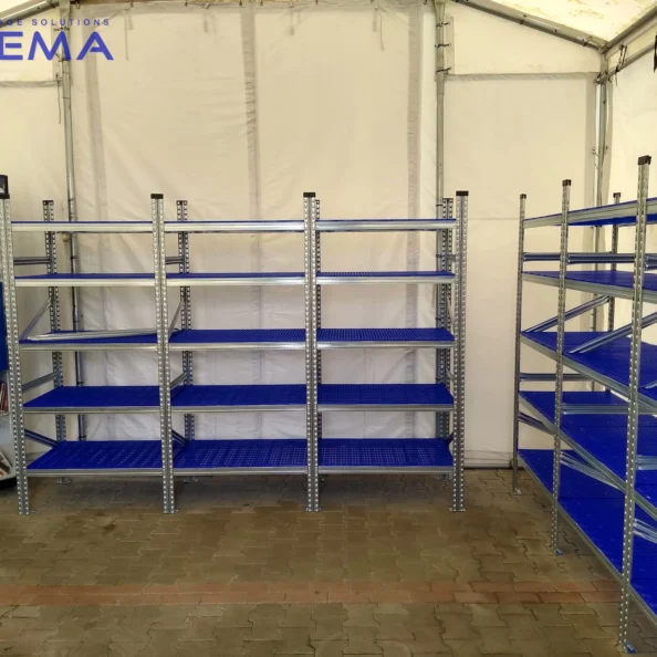 Stabilna budowa – solidna stalowa rama i system montażu zaczepowego zapewniają wytrzymałość, bezpieczeństwo i możliwość rozbudowy regałów w modułowe ciągi.