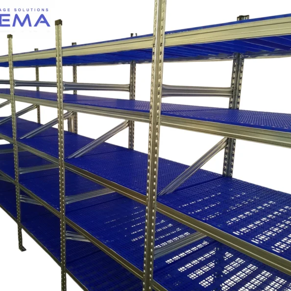 Niższa waga półek – perforacja zmniejsza masę półek, co ułatwia montaż i demontaż, a także pozwala na szybsze rekonfiguracje regału.