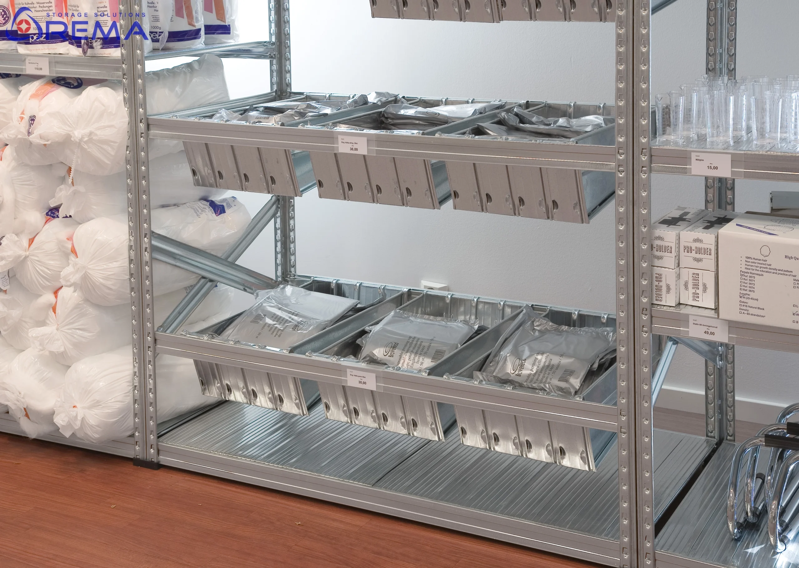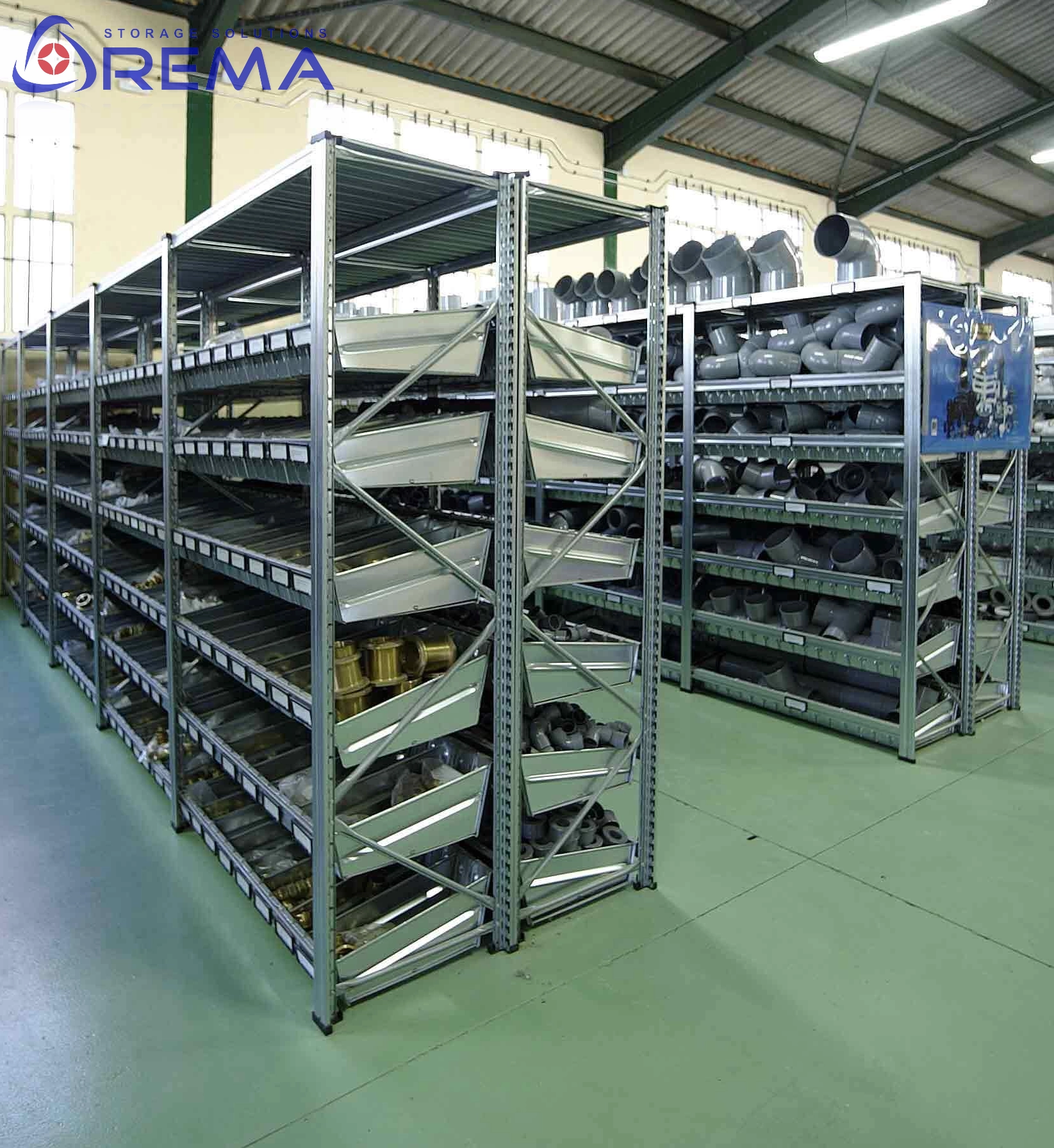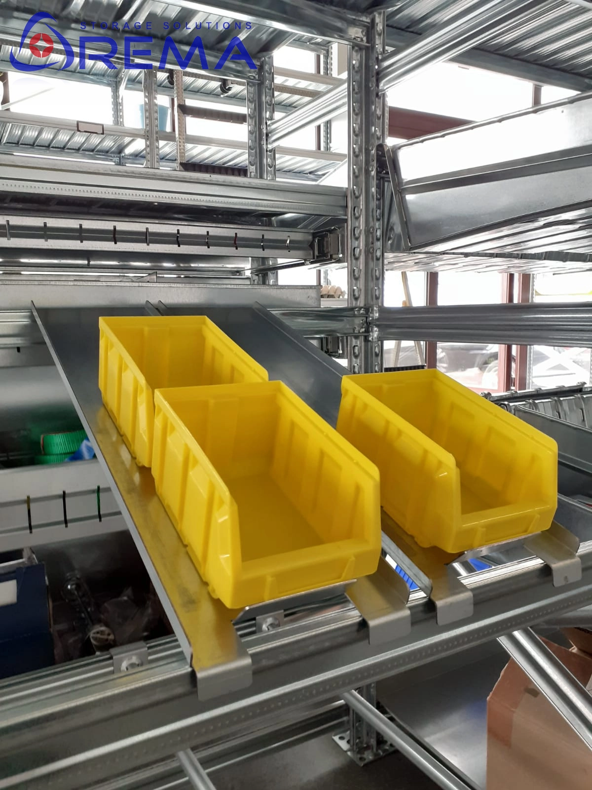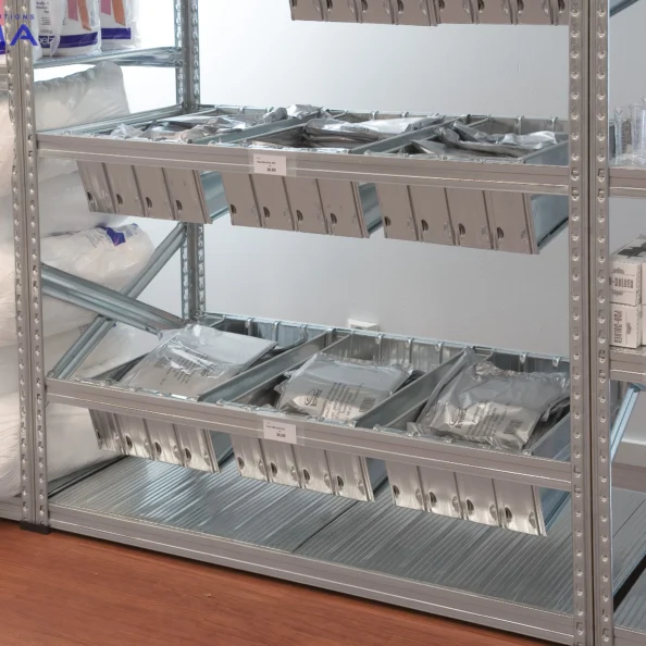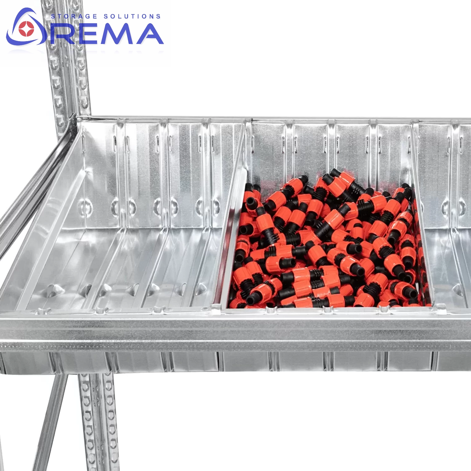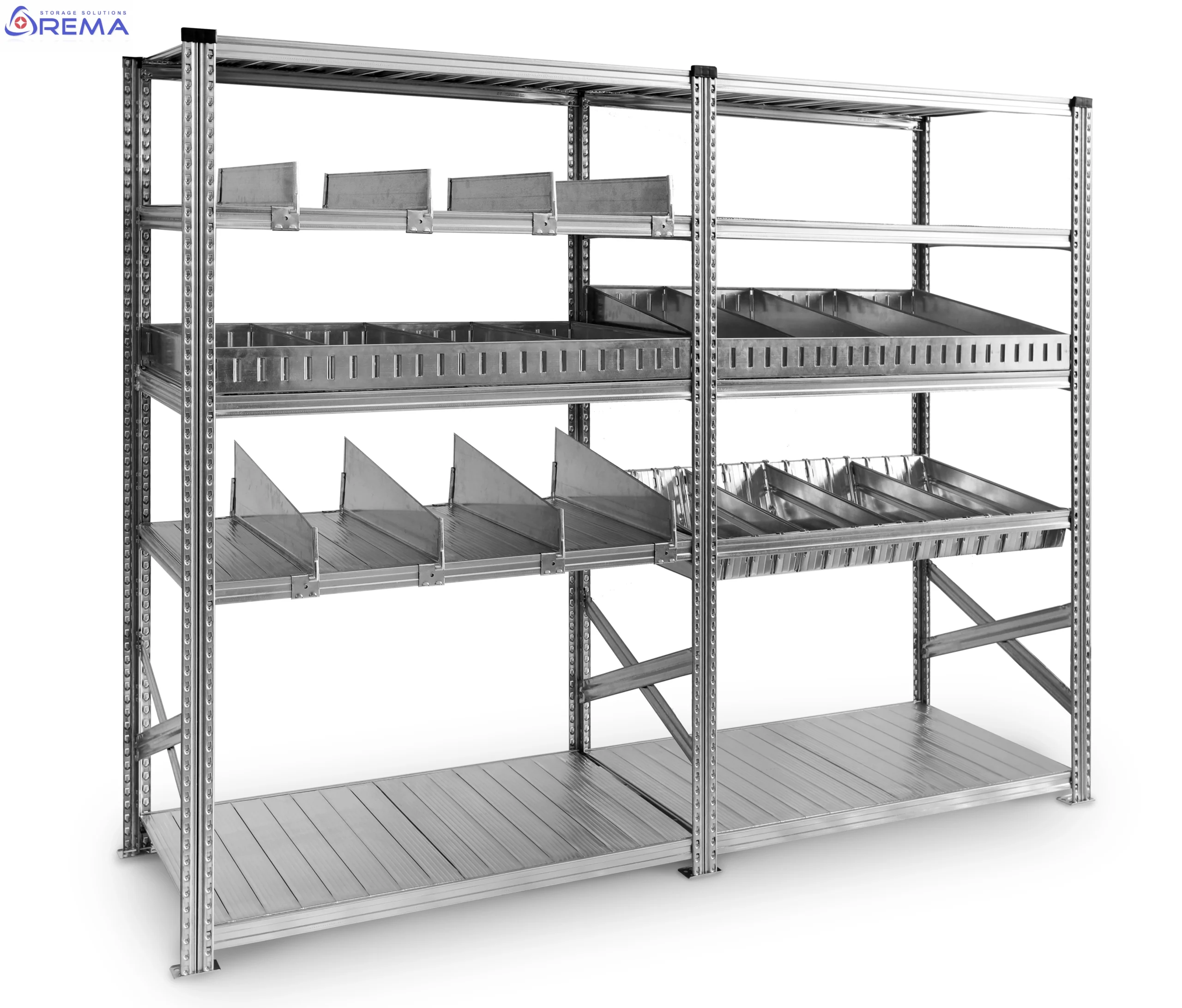 półki pojemnikowe i kontenerowe – do segregacji drobnicy – regał z pojemnikami, regał na pojemniki,
