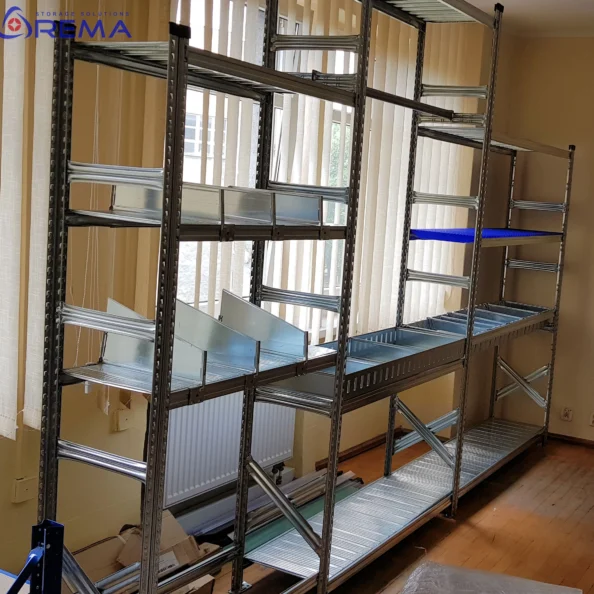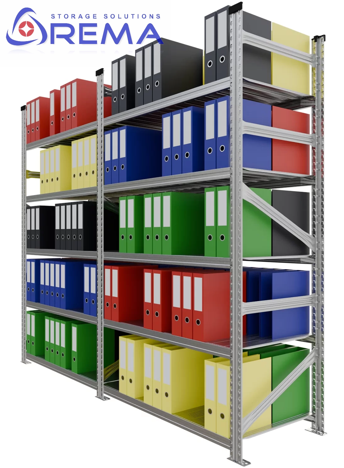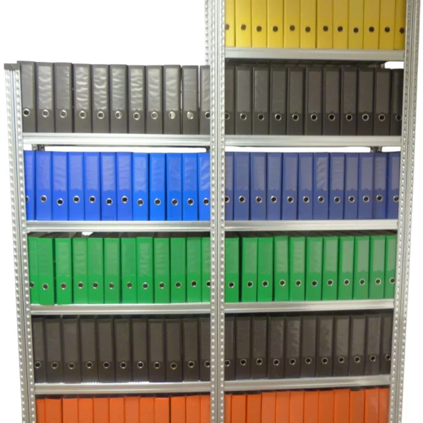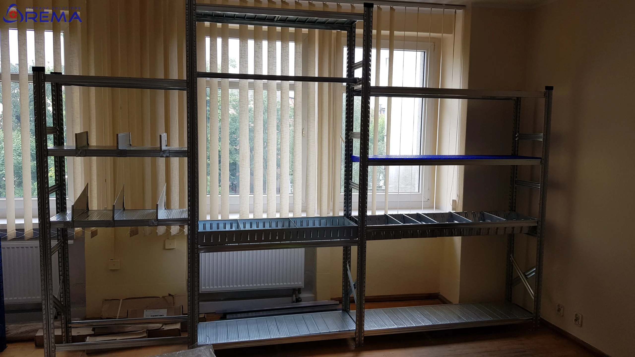 ograniczniki boczne i tylne – zapobiegające zsuwaniu przedmiotów i dokumentów – regał archiwalny ocynkowany,