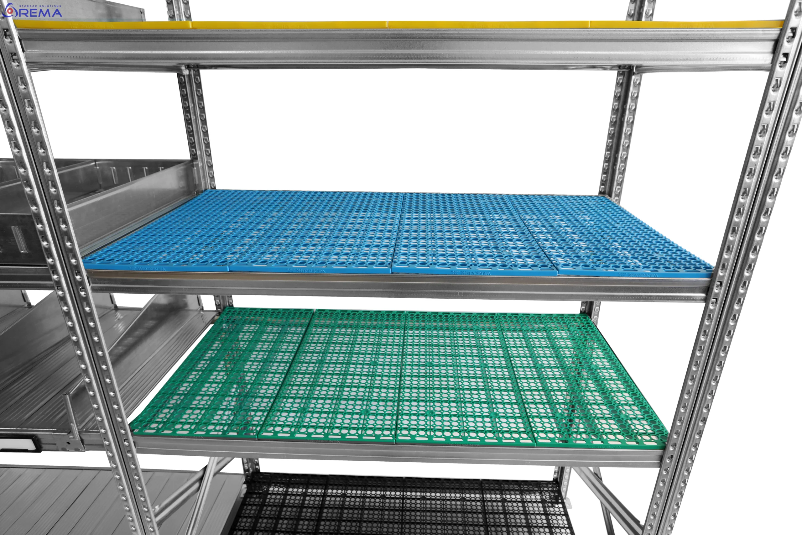 Dostępne różne typy półek – stalowe, perforowane, PCV, pojemnikowe, wiórowe,