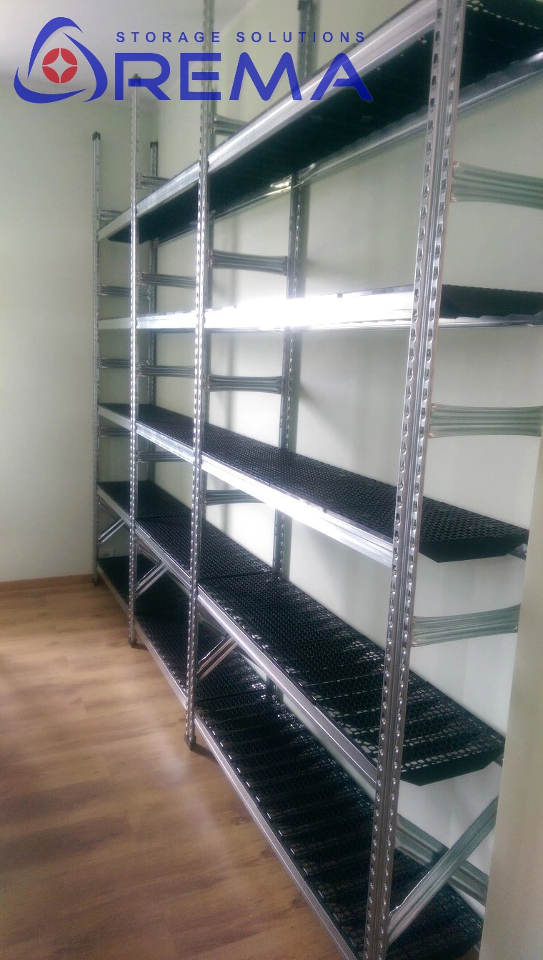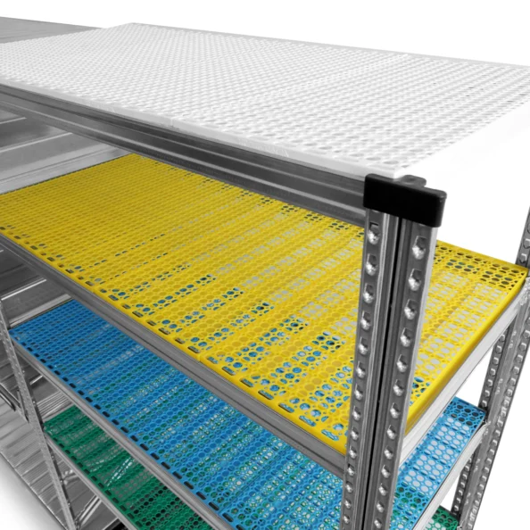 półki perforowane stalowe lub PCV – do chłodni, balkonów i szklarni – regał półkowy PCV, regał na balkon, regał do szklarni, regał perforowany,
