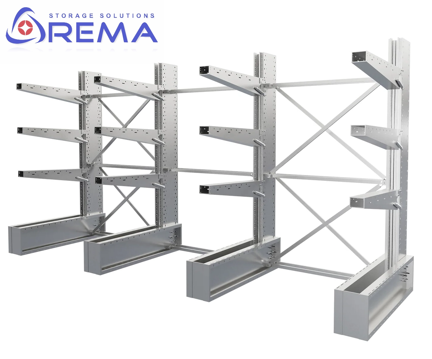 Dzięki możliwości regulacji wysokości ramion i konfiguracji długości wsporników, regał można łatwo przystosować do zmieniających się wymiarów składowanych towarów.