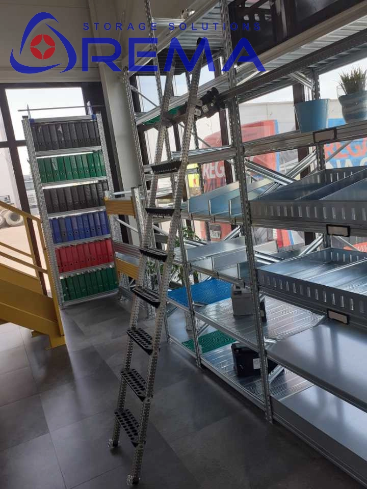 Regał z drabiną jezdną to zaawansowany system przechowywania, stworzony z myślą o maksymalnej efektywności, bezpieczeństwie i komforcie użytkowania. Oparty na sprawdzonej konstrukcji regałów metalowych SU123, został wzbogacony o innowacyjny system drabin przesuwnych, które umożliwiają łatwy i szybki dostęp do najwyższych półek – bez konieczności używania dodatkowych podestów czy rusztowań.