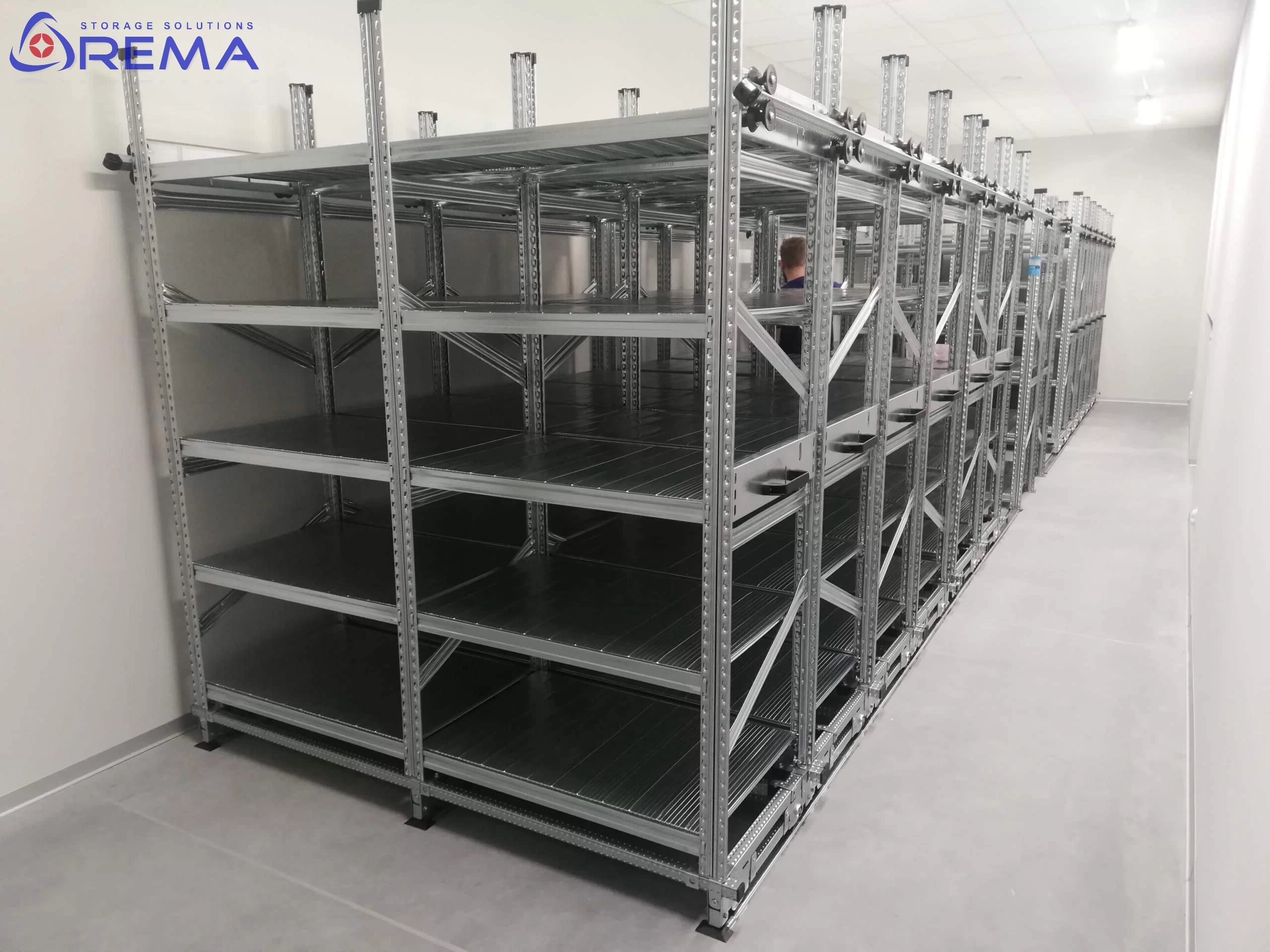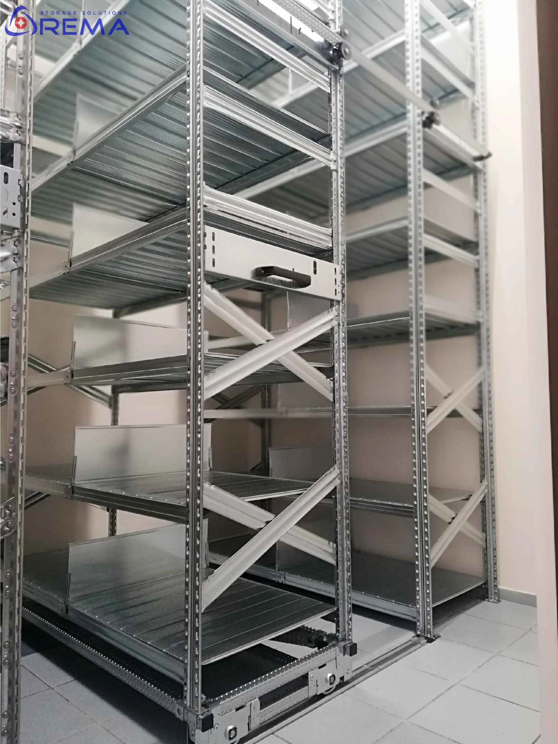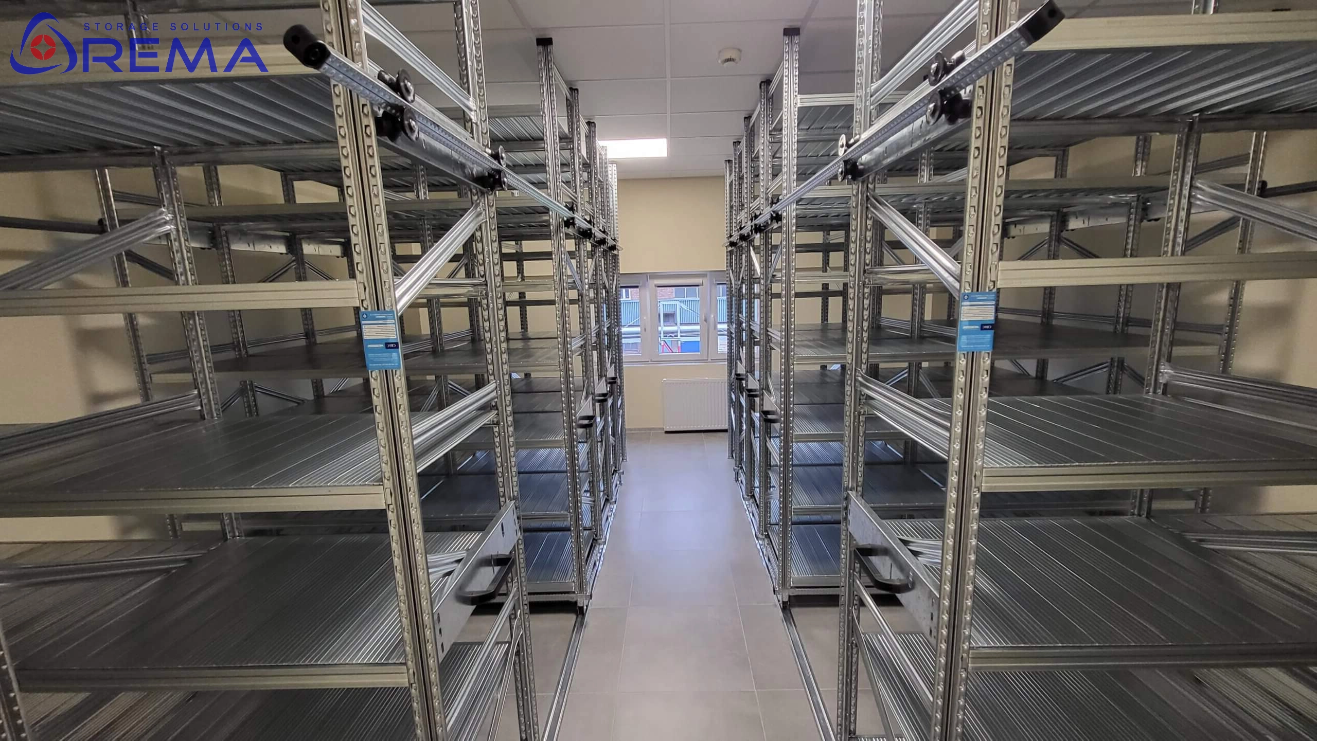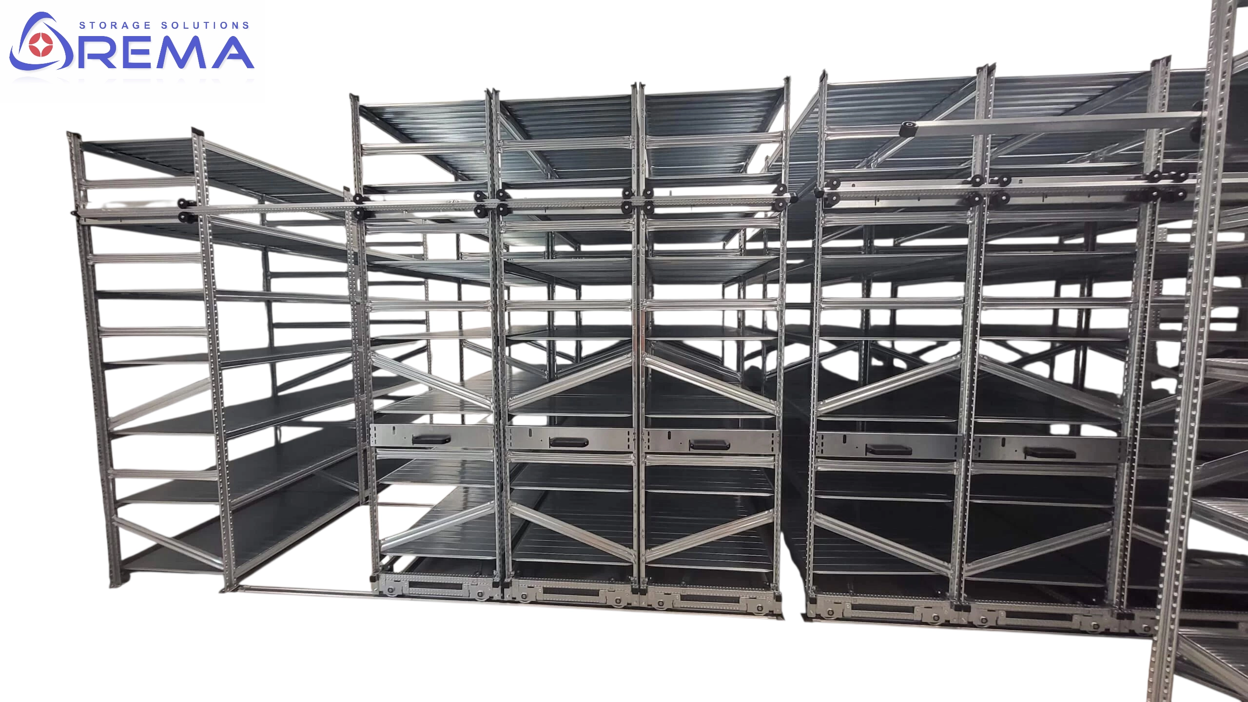 Dzięki systemowi przesuwu opartego na stalowych wózkach jezdnych, pozwalają na znaczną oszczędność miejsca oraz zwiększenie pojemności magazynu nawet o 80% w porównaniu z tradycyjnymi systemami półkowymi.