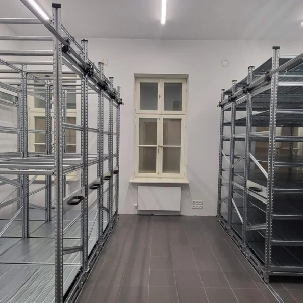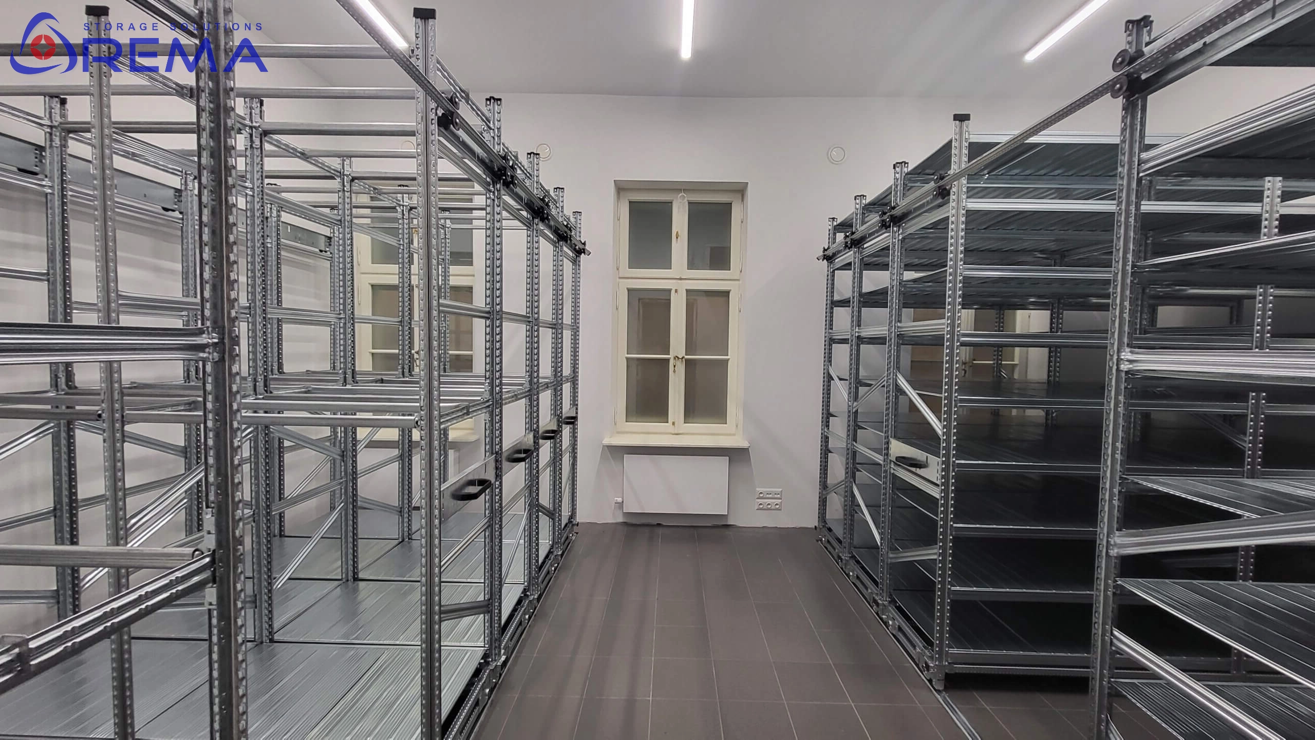 System regałów mobilnych magazynowych to lekka, manualna konstrukcja jezdna, niewymagająca żadnej ingerencji w posadzkę – dzięki czemu można ją montować także w pomieszczeniach z ogrzewaniem podłogowym lub na wyższych kondygnacjach budynków.