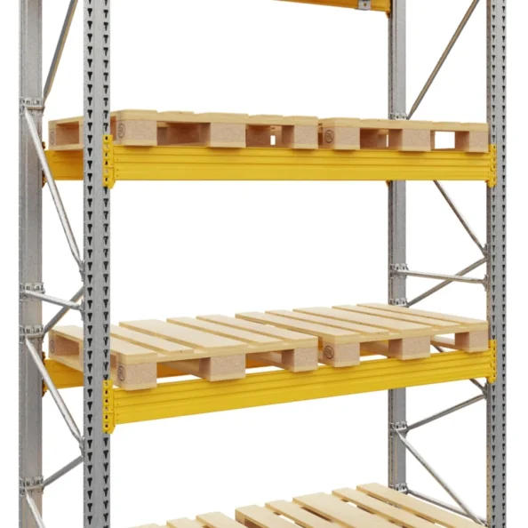 Każdy regał paletowy w ocynku składa się z dwóch podstawowych elementów: ram pionowych oraz trawers (belek poprzecznych), które tworzą poziomy nośne dla palet.