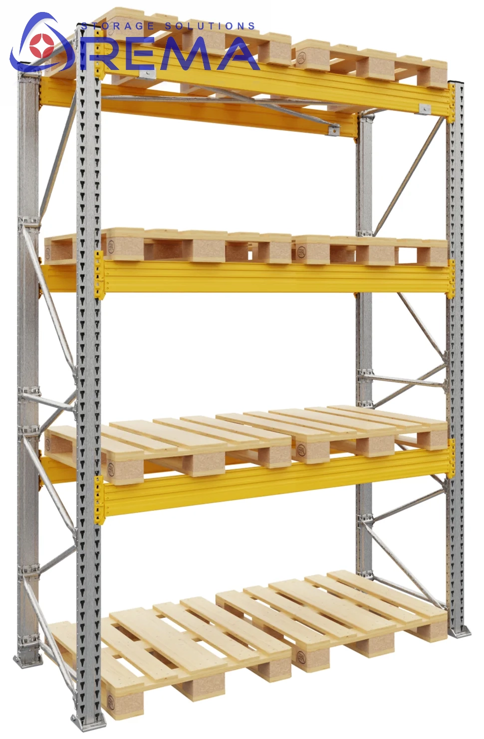 Regały paletowe galwanizowane REMA umożliwiają łatwy dostęp do każdej jednostki paletowej, co znacząco skraca czas kompletacji i załadunku.