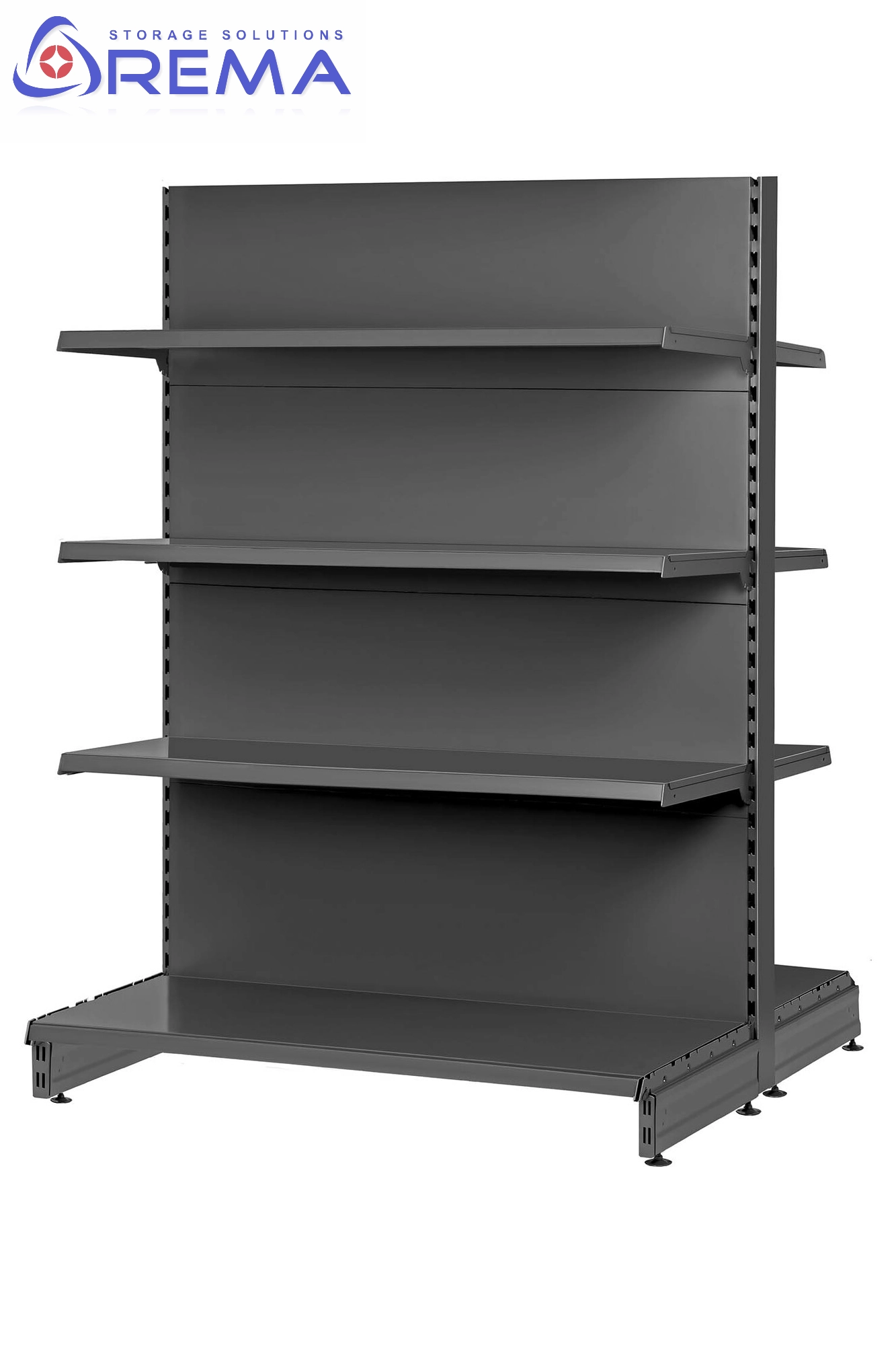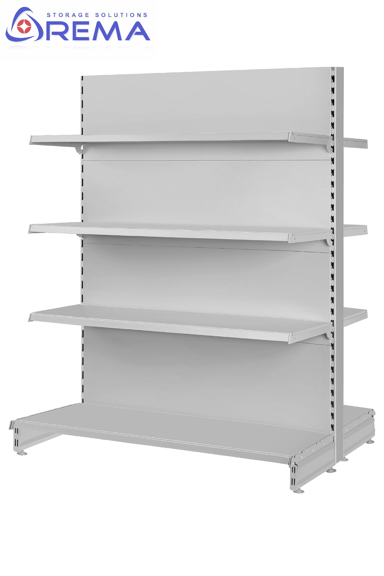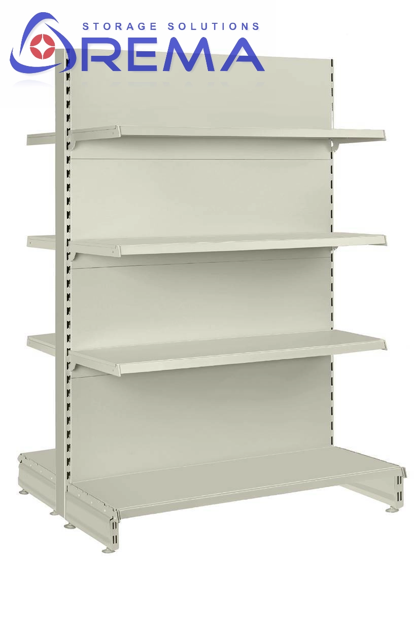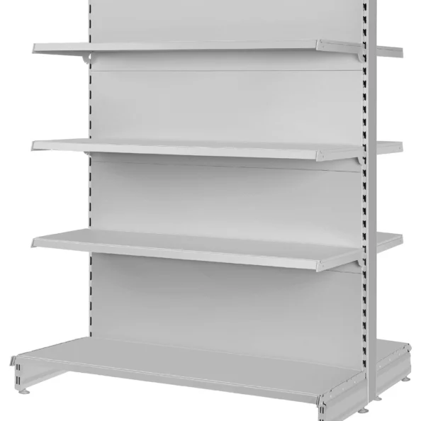 Regały sklepowe dwustronne są projektowane w taki sposób, aby łączyć wytrzymałość z funkcjonalnością. Ze względu na ich konstrukcję regał stoi w środku sklepu i pełni funkcję gondoli. Z tego powodu musi utrzymywać stabilność nawet przy pełnym obciążeniu półek.
