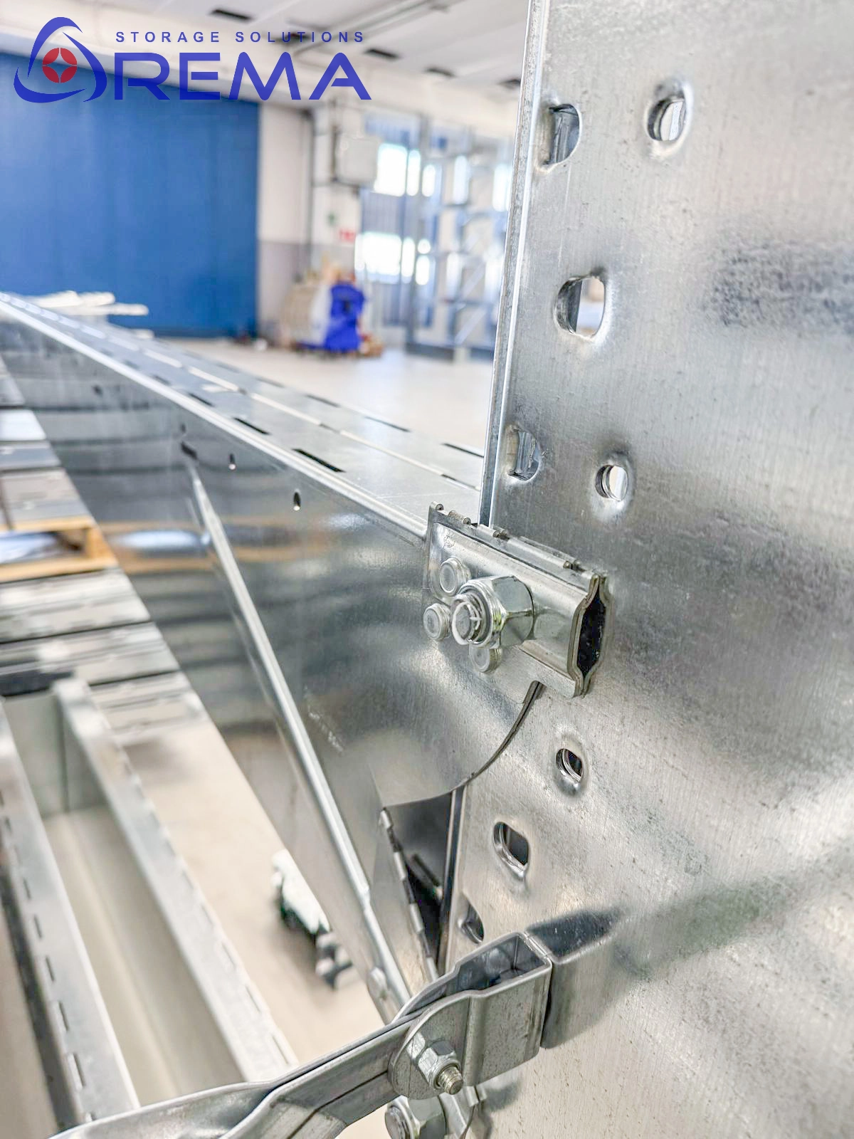 Całość konstrukcji wykonana jest z grubościennych profili stalowych, co wpływa na dużą sztywność regału, a jednocześnie umożliwia jego bezpieczną eksploatację nawet przy pełnym obciążeniu.