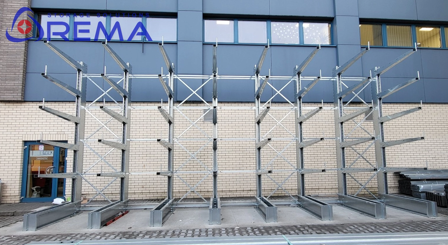 System ciężkich regałów wspornikowych został zaprojektowany modułowo. Pozwala to na: