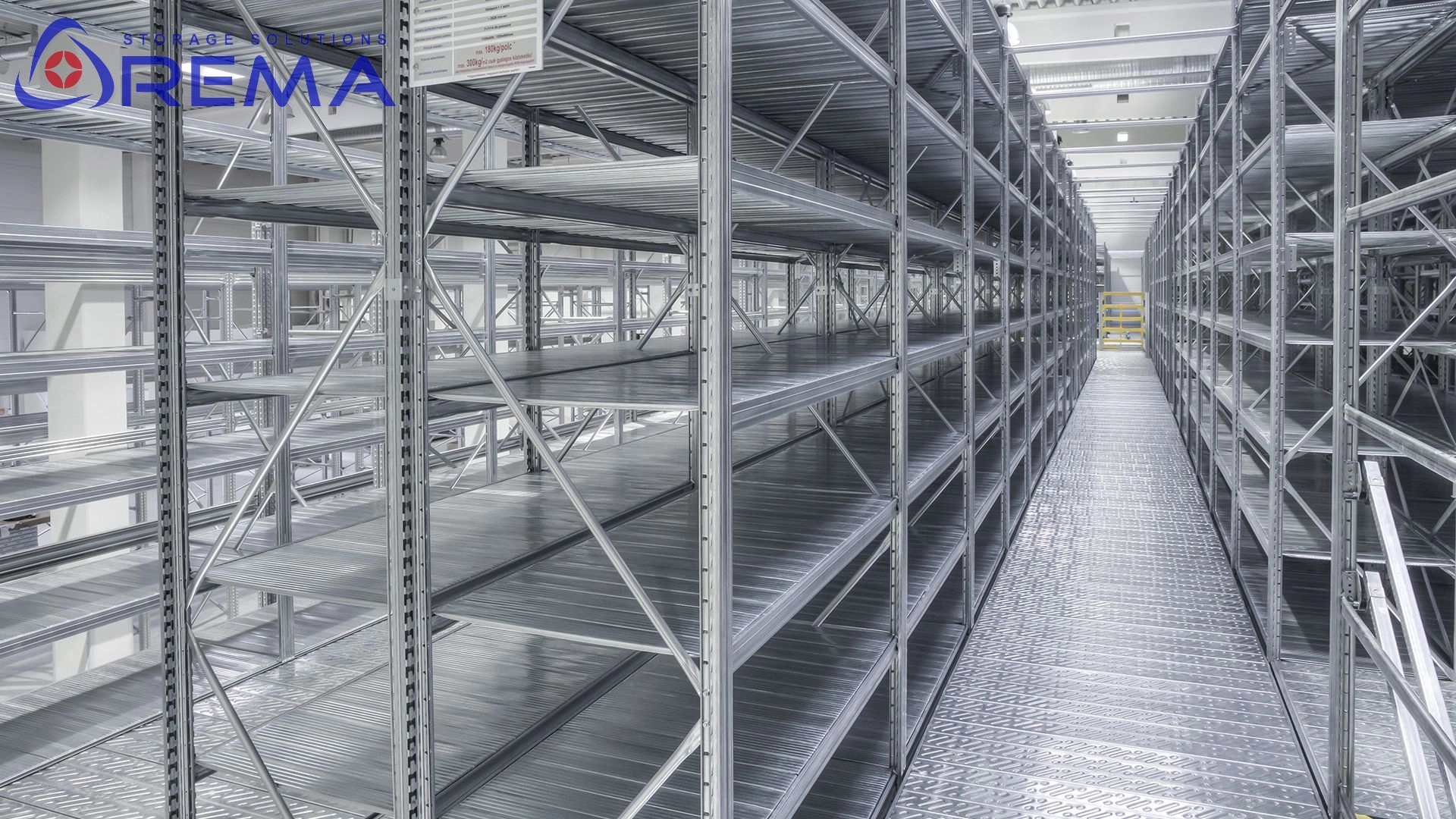 Typowe regały magazynowe stalowe są wykonywane ze stali ocynkowanej lub malowanej proszkowo.