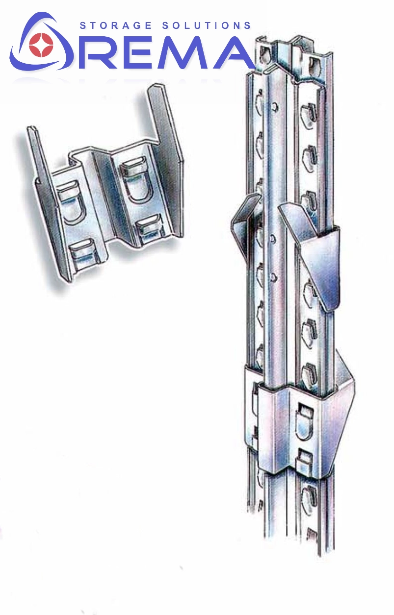 Łączniki te montuje się na kilku wysokościach (zazwyczaj co dwa lub trzy poziomy półek), co pozwala uzyskać sztywną i zwartą konstrukcję odporną na drgania i przesunięcia.