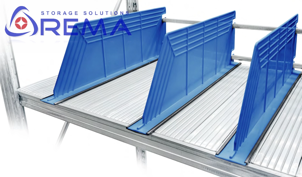 W systemach REMA / SU123 każdy separator można dopasować do wymiarów półki – montaż odbywa się bez narzędzi, a elementy są w pełni kompatybilne z pozostałymi akcesoriami systemu.
