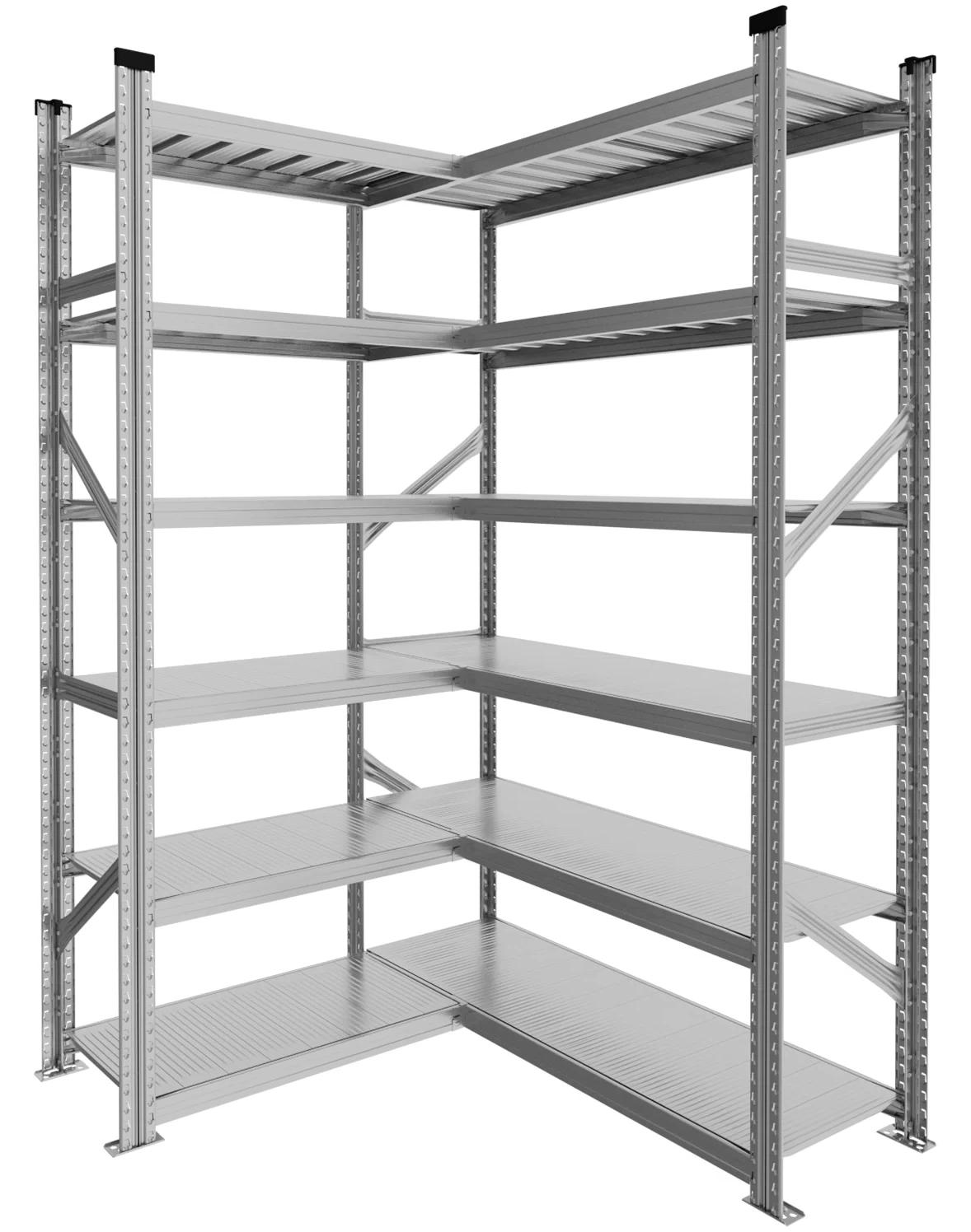 Zabudowa narożnika polega na takim połączeniu regałów, aby maksymalnie wykorzystać powierzchnię w miejscu, gdzie stykają się dwie ściany lub dwa ciągi regałów ustawione pod kątem.